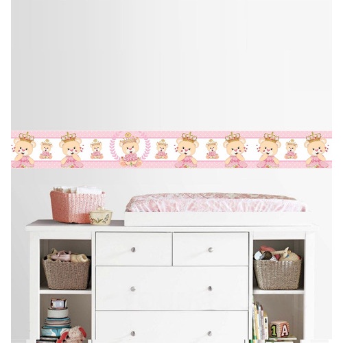 Faixa decorativa personalizada border ursinha princesa rosa meiga fofa tendencia
