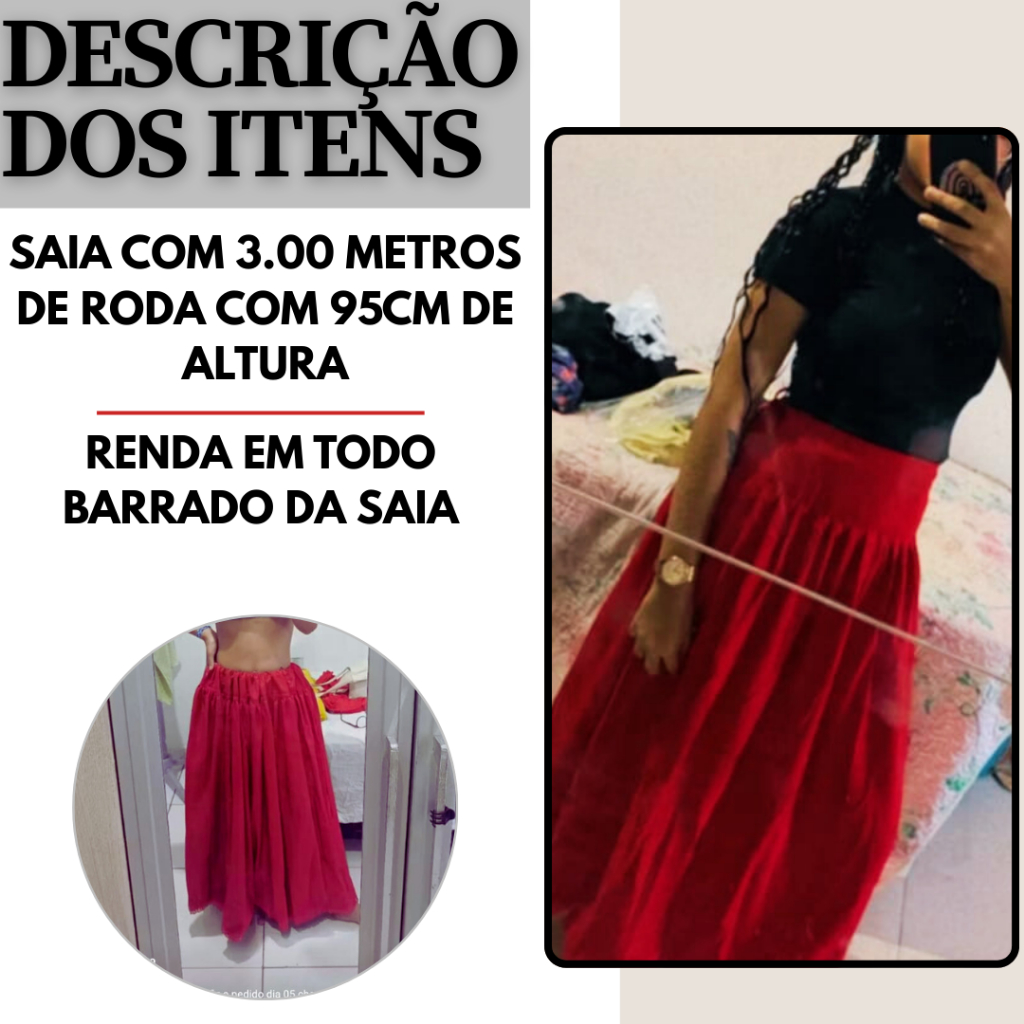Saia Umbanda e Candomble Pomba Gira Vermelha com renda Premium 3.00 metros de roda 95cm de altura