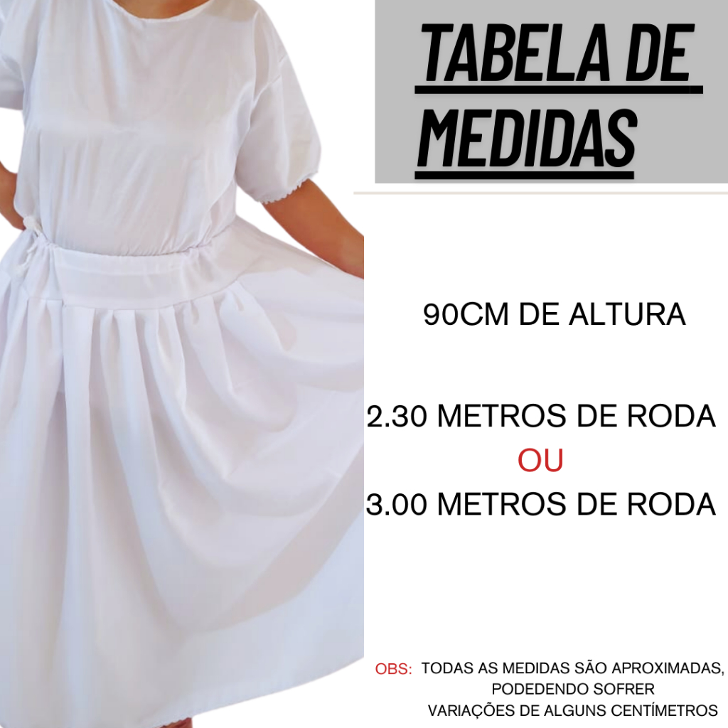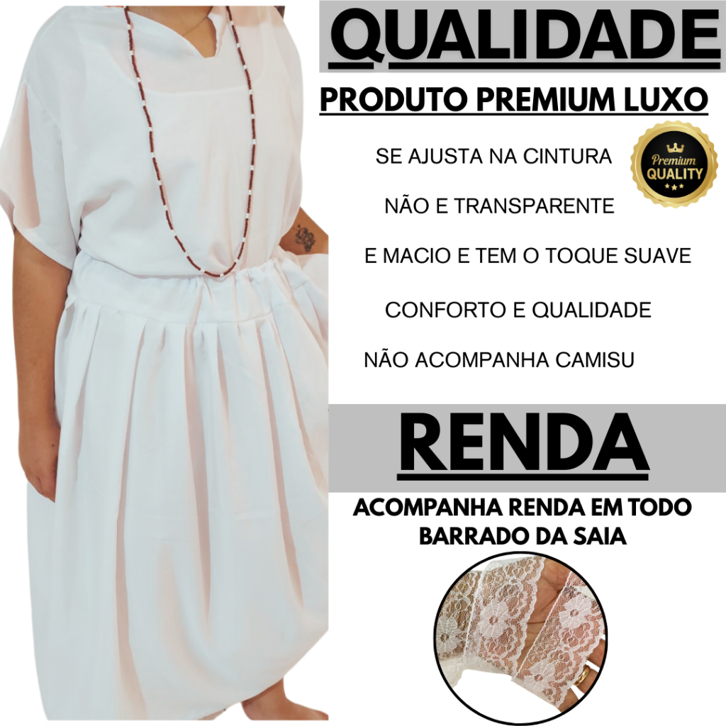 Saia Umbanda e Candomblé com Renda Premium Luxo 2.30M ou 3.00M de Roda com 90cm de Altura