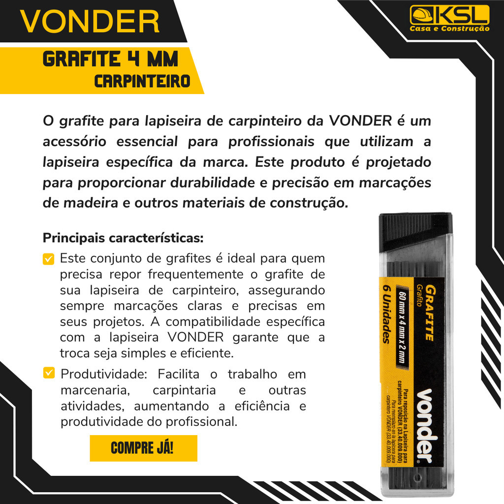 18 Und Grafite Para Lapiseira Carpinteiro Marceneiro Vonder