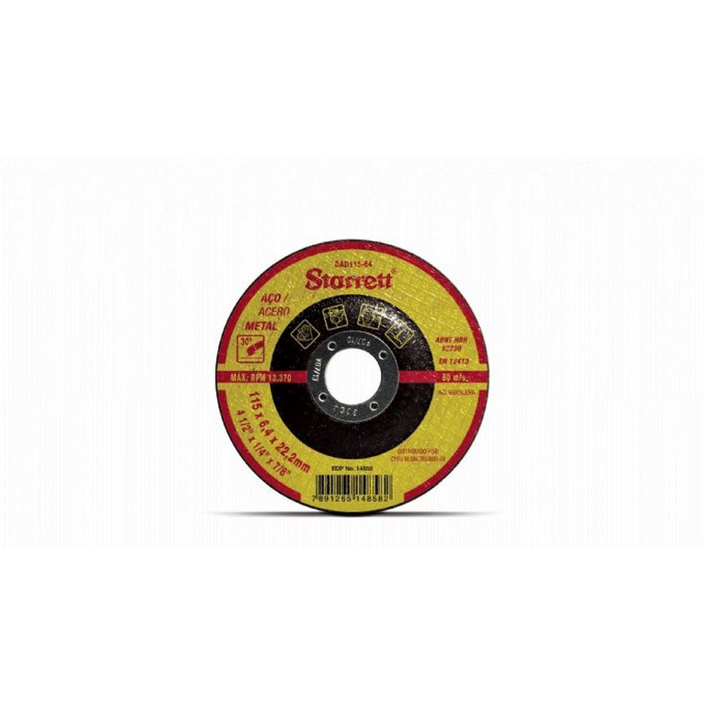 DISCO DESBASTE 115,0MM (4.1/2 ) X 6,4 X F22 STARRETT DAD115-64X