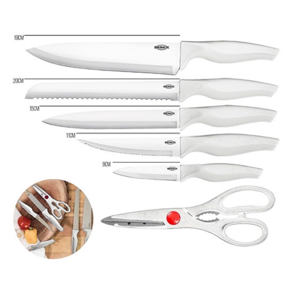 JOGO DE FACAS EM INOX COM TESOURA CROSS 6 PEÇAS BRANCO 2556/340 BRINOX