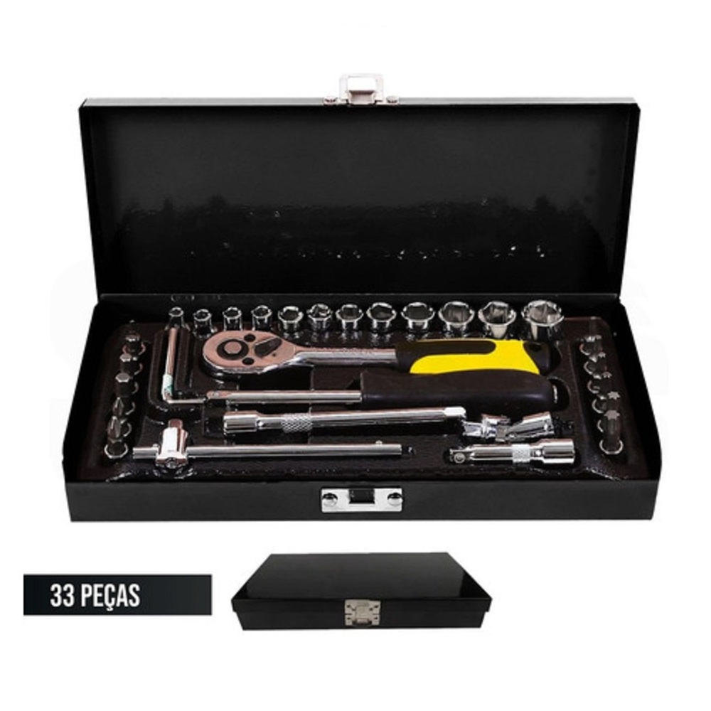 Jogo Soquetes Bits 1/4 C/chave Catraca 33 Pçs 5610 Titanium