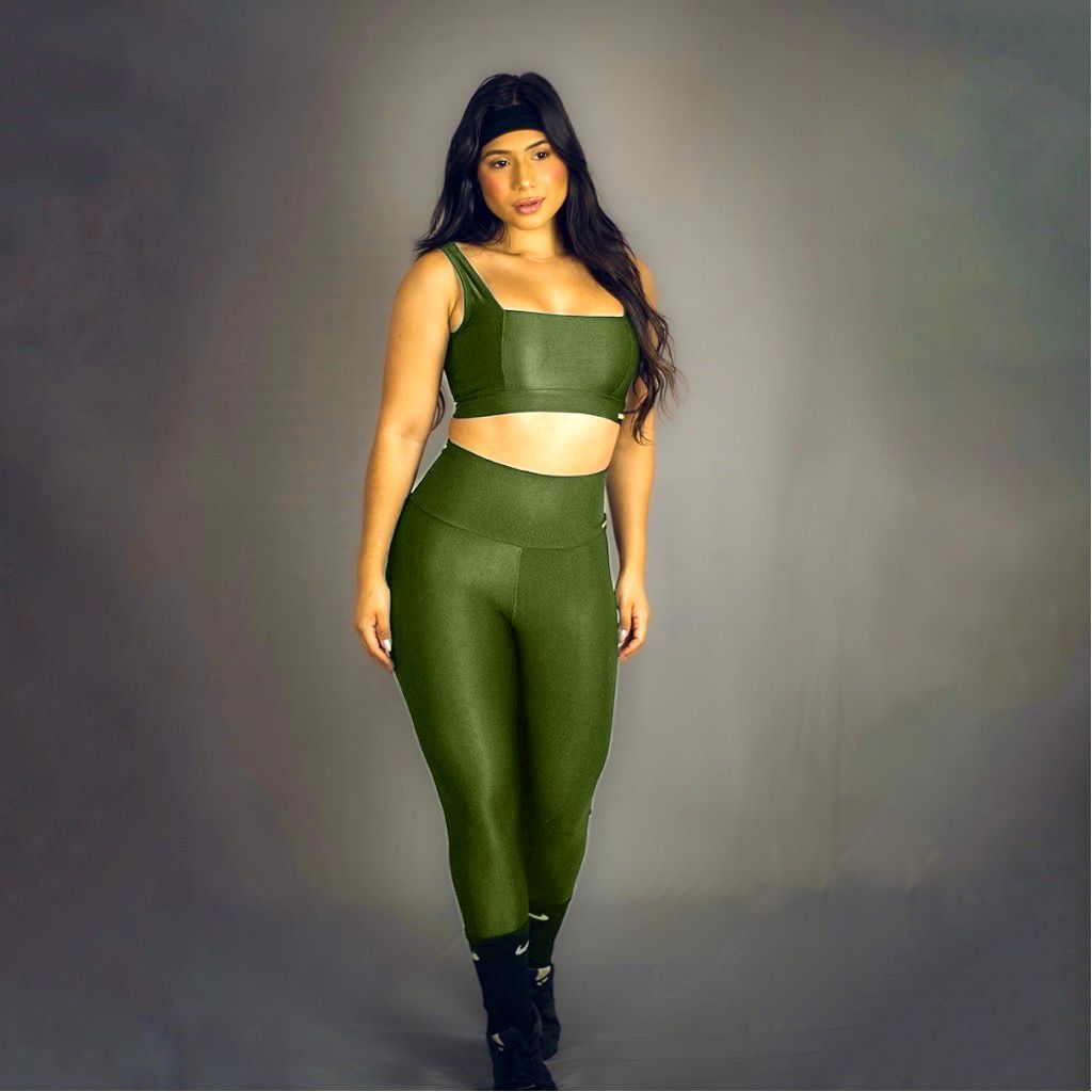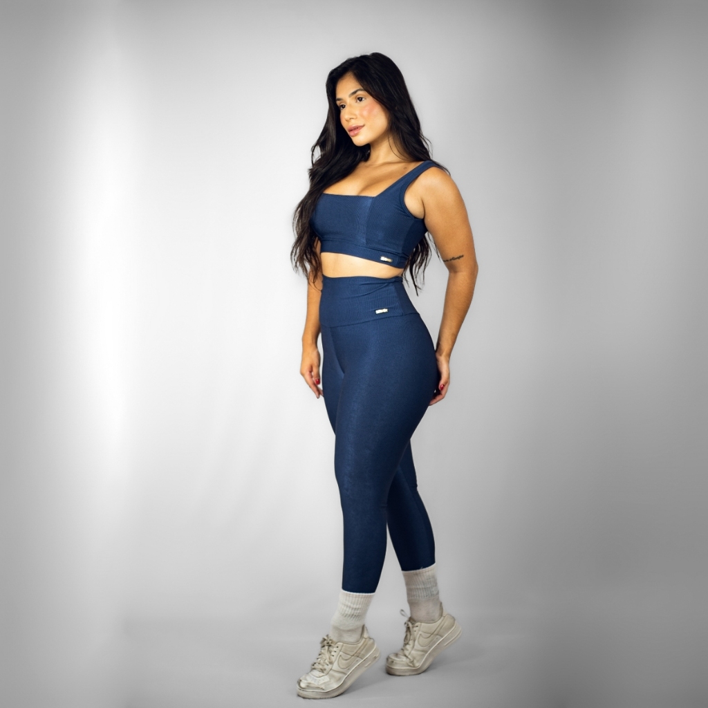 Conjunto Fitness Feminino Top Calça Legging Wonder Canelado