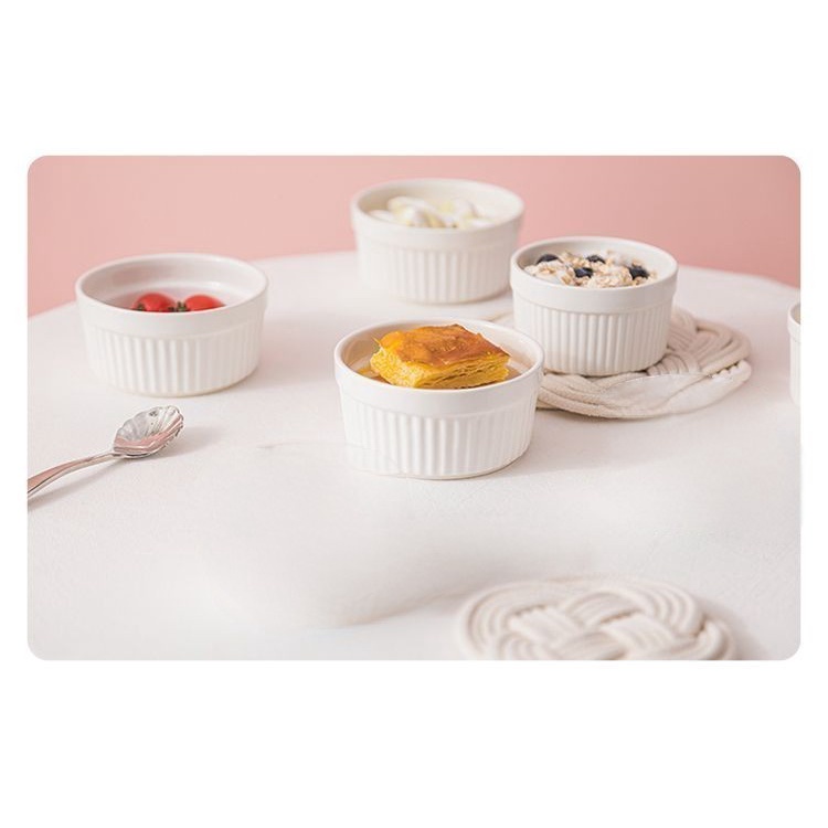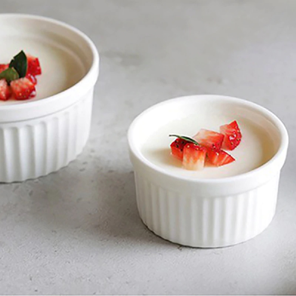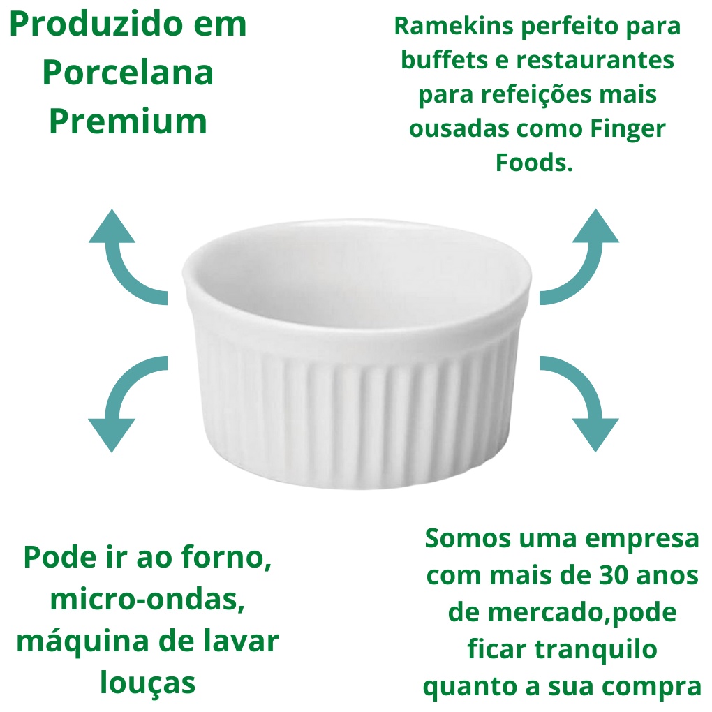 Kit 6 Ramequins Porcelana Premium 200ml Branco para Souflé Creme Brûlée Molhos Forno e Mesa Posta