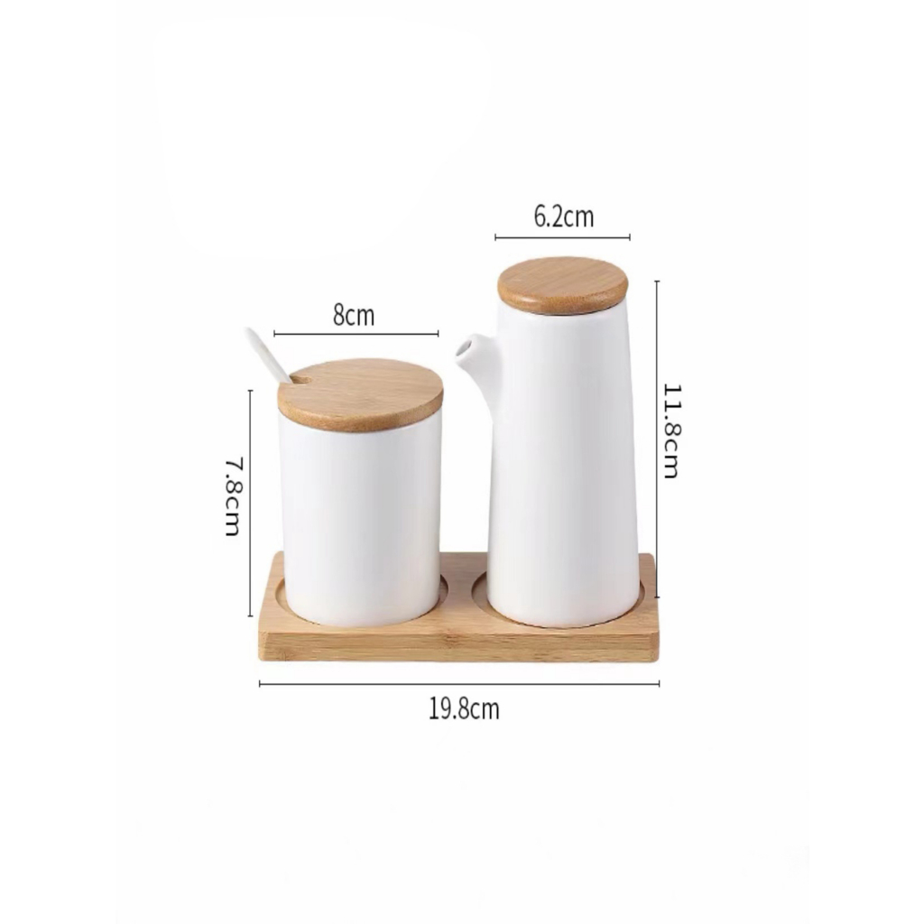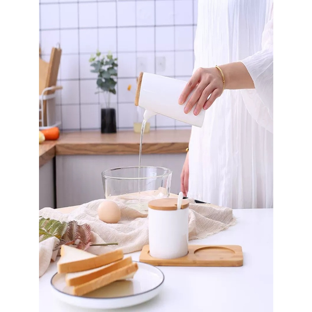 Kit Com 3 Peças Porta Mantemento em Cerâmica com bandeja com colher de bambu