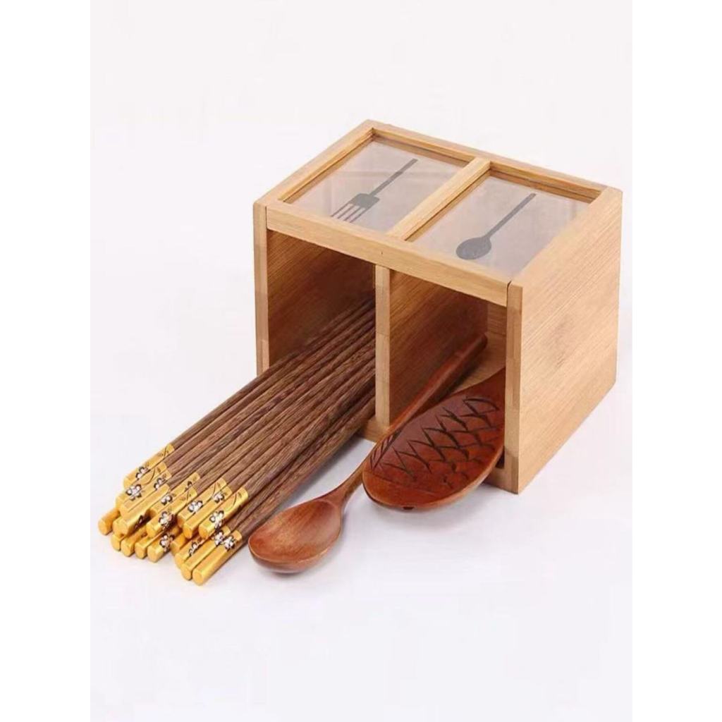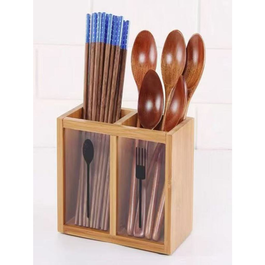 Porta Talheres Bambu Organizador Escorredor de Bambu