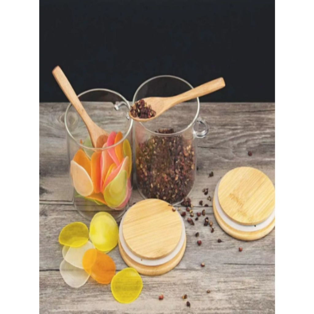 Kit 3 Pote De Vidro Hermético Tampa De Bambu 400ml Com Colher De Bambu