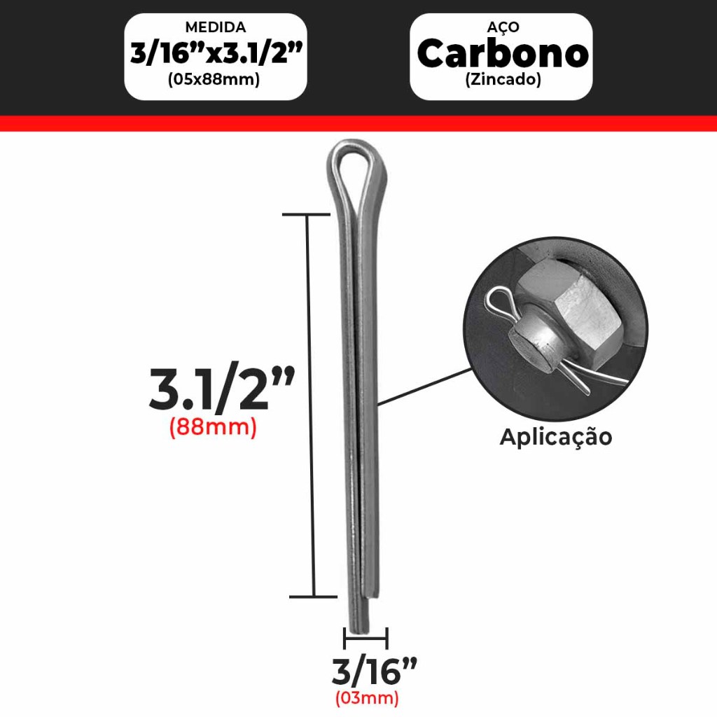 Cupilha Contra Pino 5,0 x 88mm Grampo Trava Eixo 10 Und