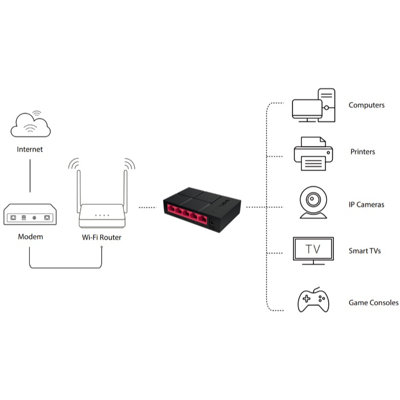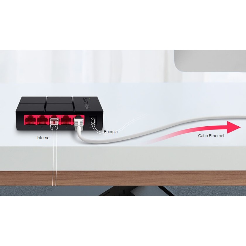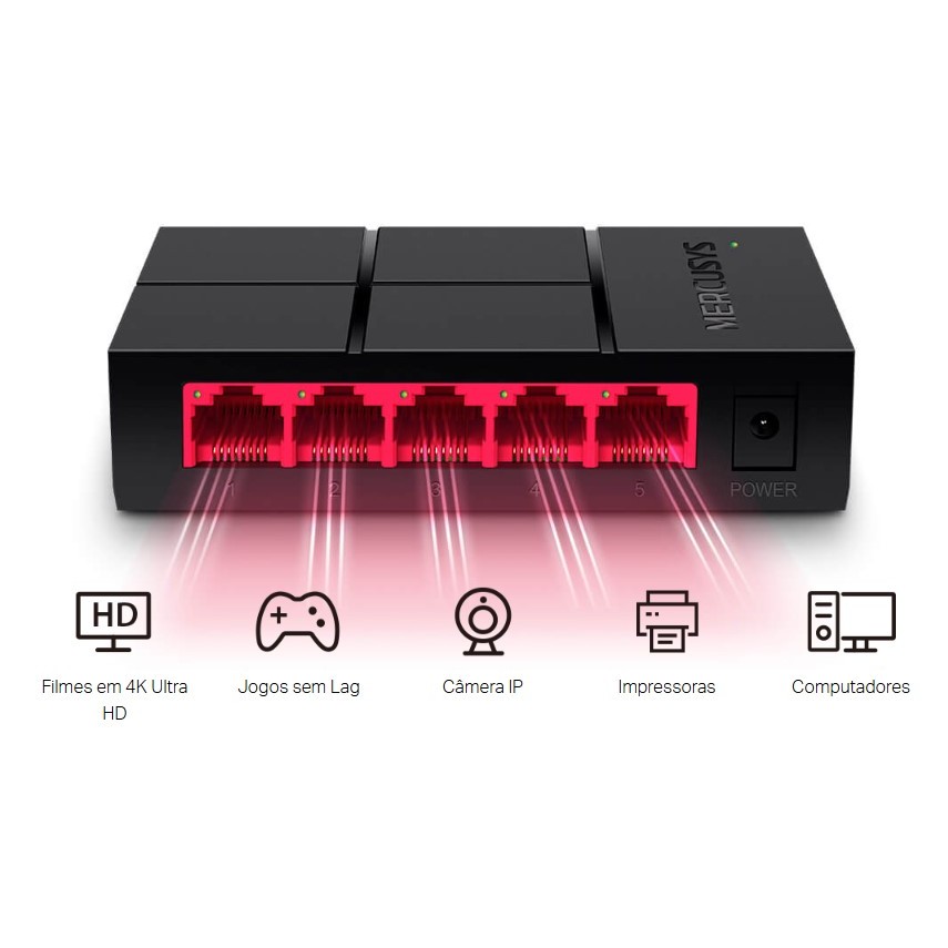 Switch 5 Portas Rj45 Gigabit Rede 10/100/1000mbps Hub Xbox Mercusys ms105g fonte Bivolt Automática