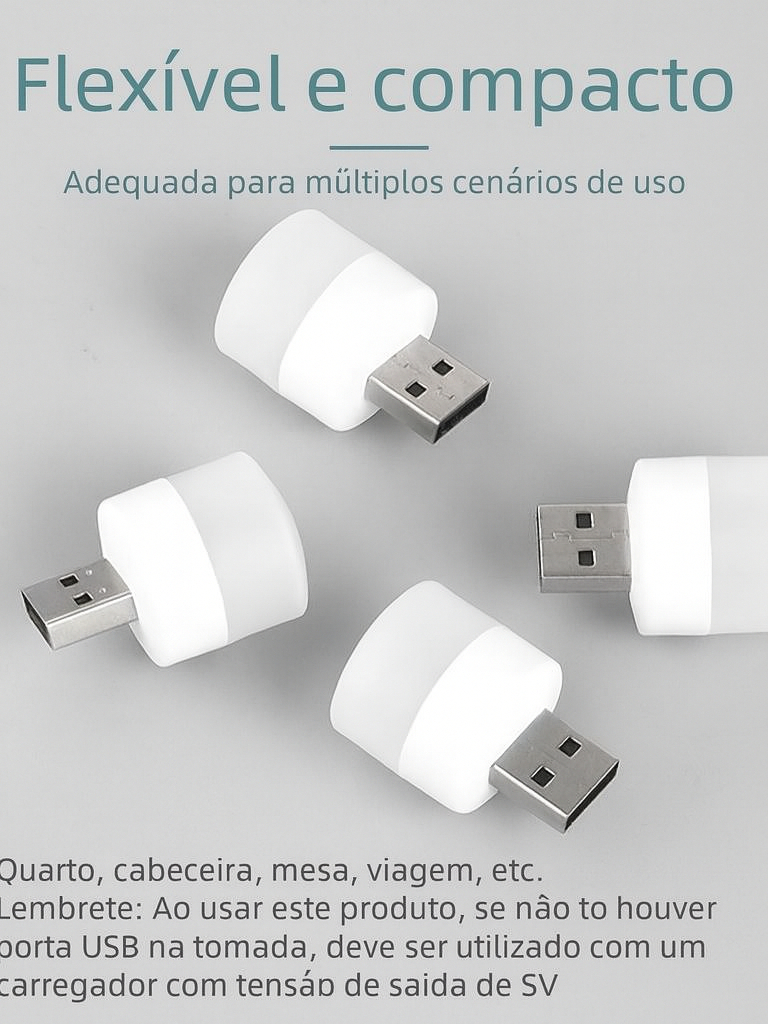Mini Lâmpada LED USB 1W – Luz Branca ou Quente – Portátil para Notebook, Power Bank e Tomada USB