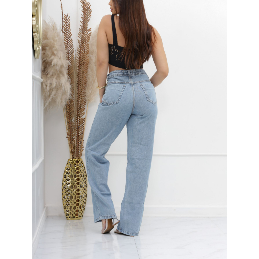 kissmelady 1307 Calça jeans feminina pantalona wide leg Sem Rasgo feminina lisa casual perna larga cintuta alta