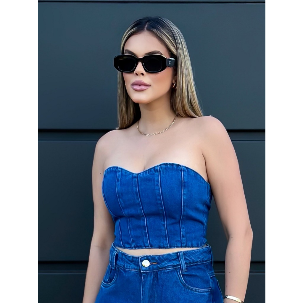 kissmelady 8108 8282 cropped jeans feminina top faixa blusa tem ziper