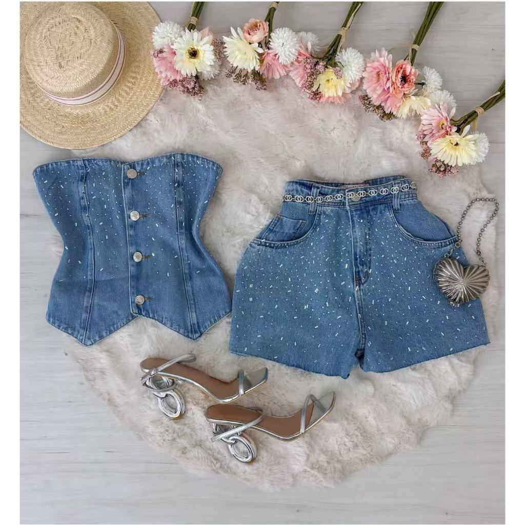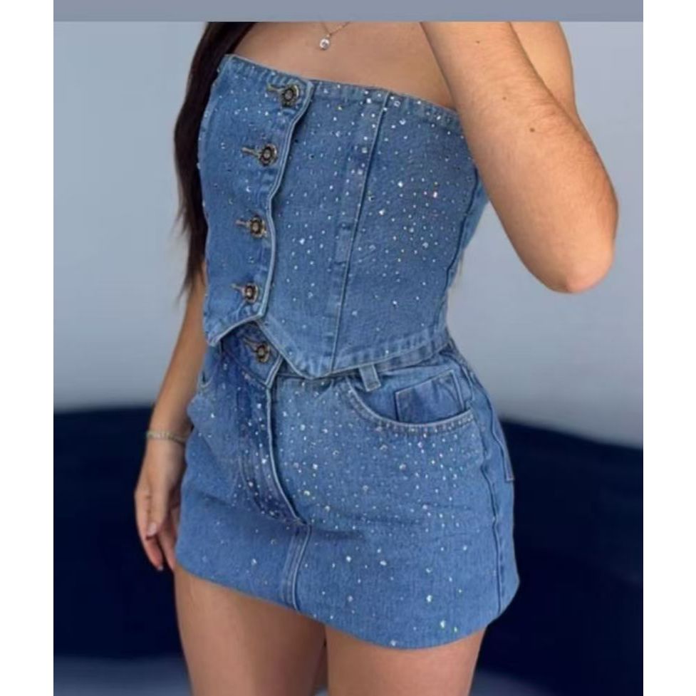 kissmelady 3010 8350 8380 8333 3003 3000 001 097conjunto jeans feminina blusa com saia com brilho sem cinto p38 m40 g42