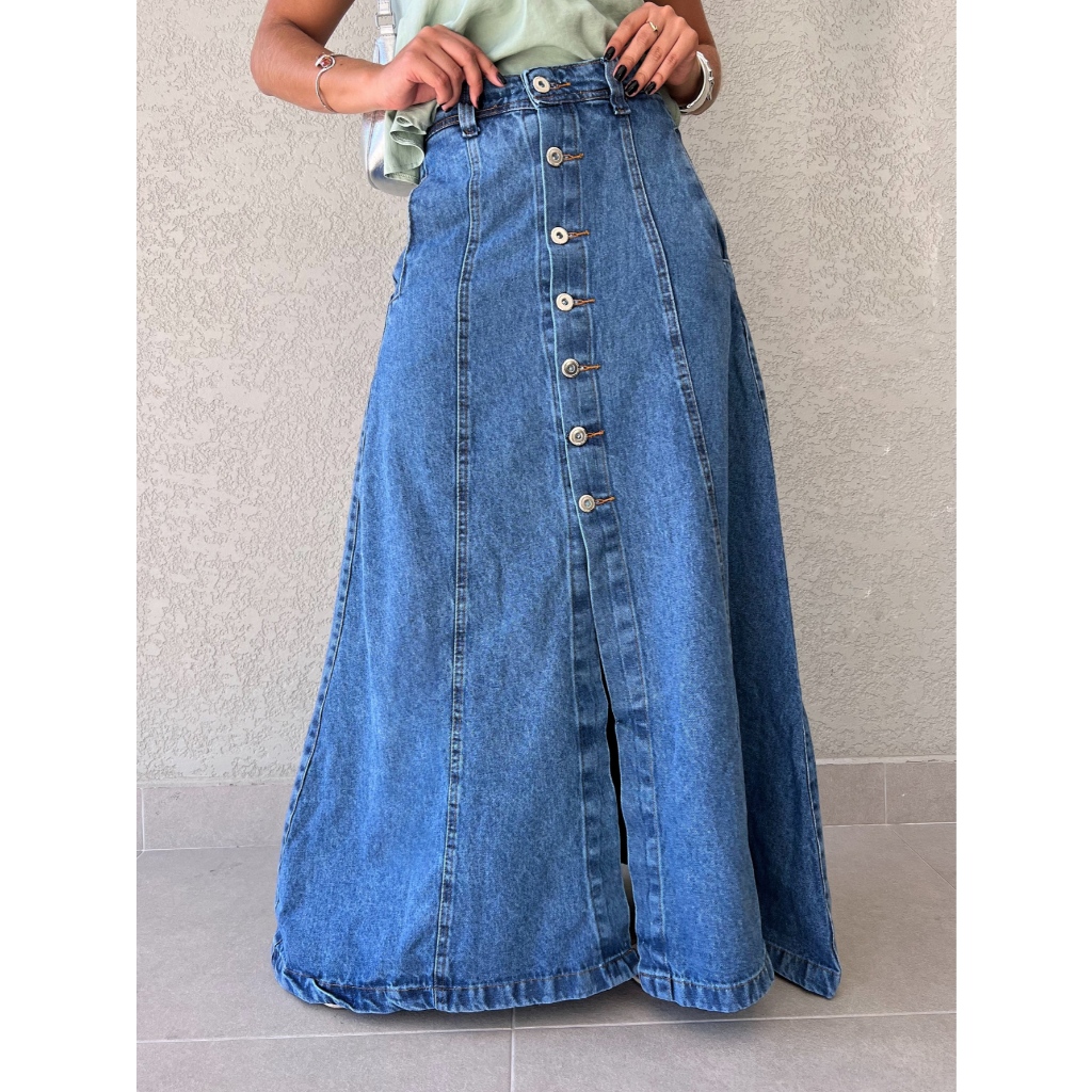 kissmelady 1023 saia longa jeans feminina sem rascada