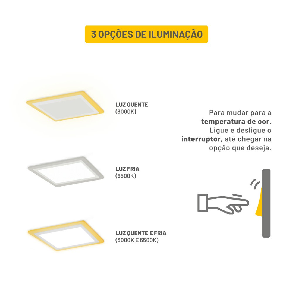 Painel LED Taschibra Dual Color 18W/6W Quadrado Sobrepor Iluminação Ajustável