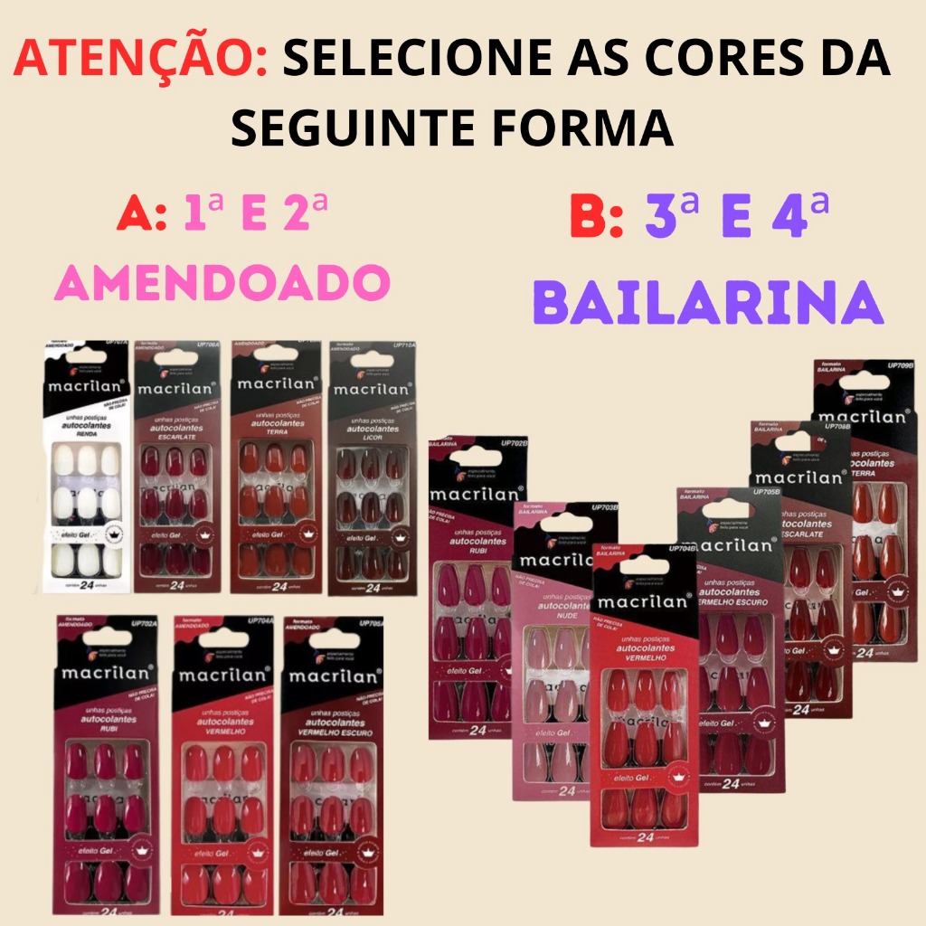 KIT 4 UNHAS POSTIÇAS AUTOCOLANTES AMENDOADA E BAILARINA