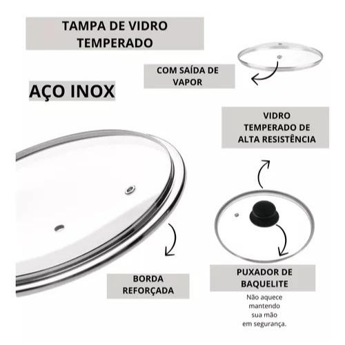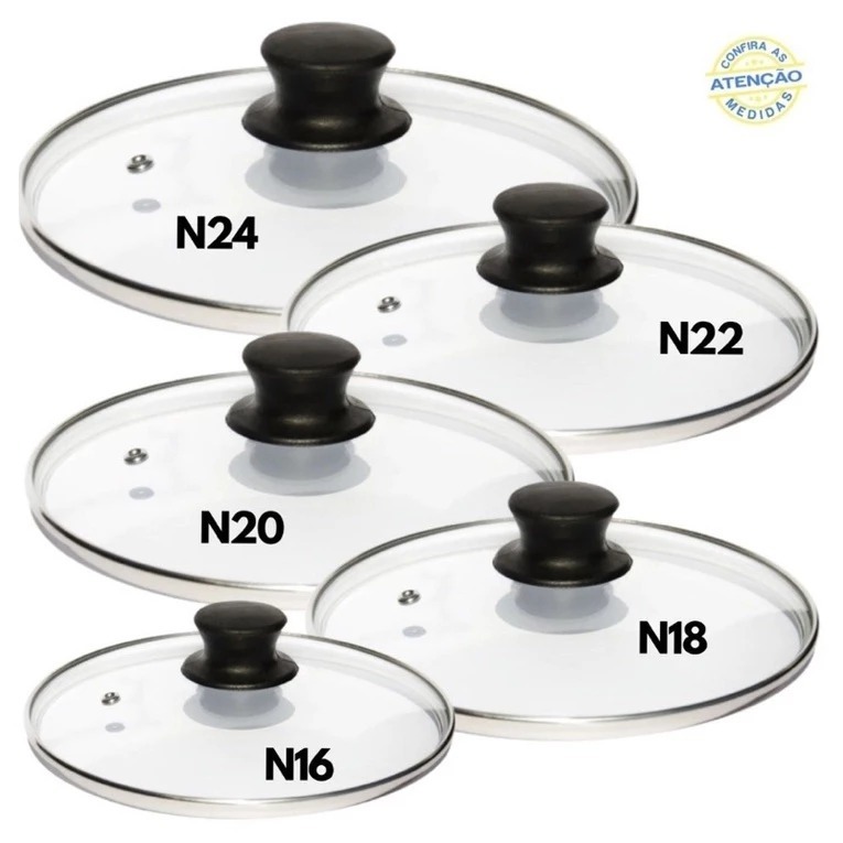 Tampa de vidro para panela com saída válvula de vapor numero 16 /18 / 20 / 22 / 24 / 28