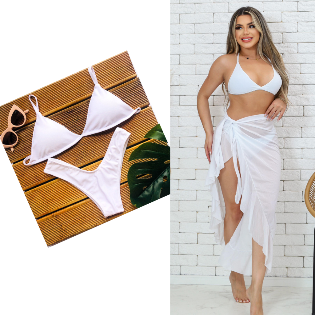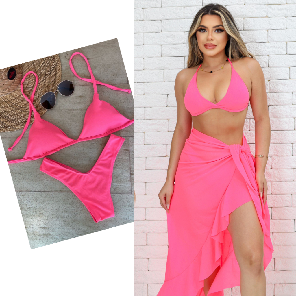 kIT Verão Biquini Asa Delta Com Bojo Mais Saída De Praia Varias Cores Pronta Entrga