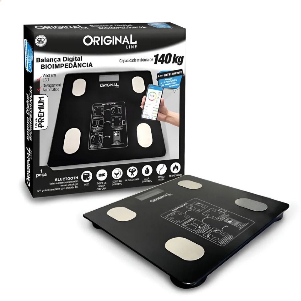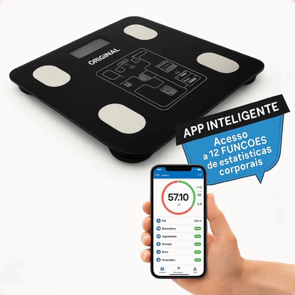 Balança Corporal Bioimpedância Bluetooth Aplicativo 140kg