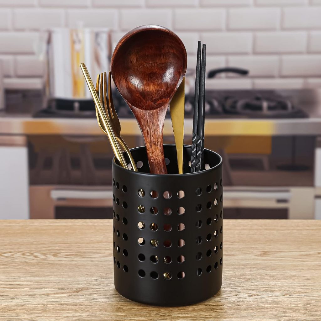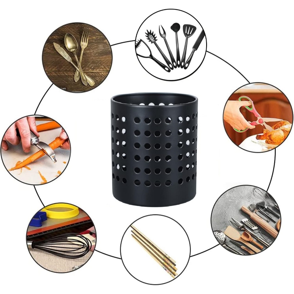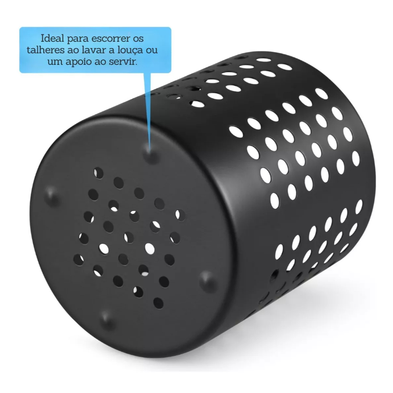 Escorredor de Talheres em Inox Preto Redondo Clink Porta Talheres 9,5cmx12cm