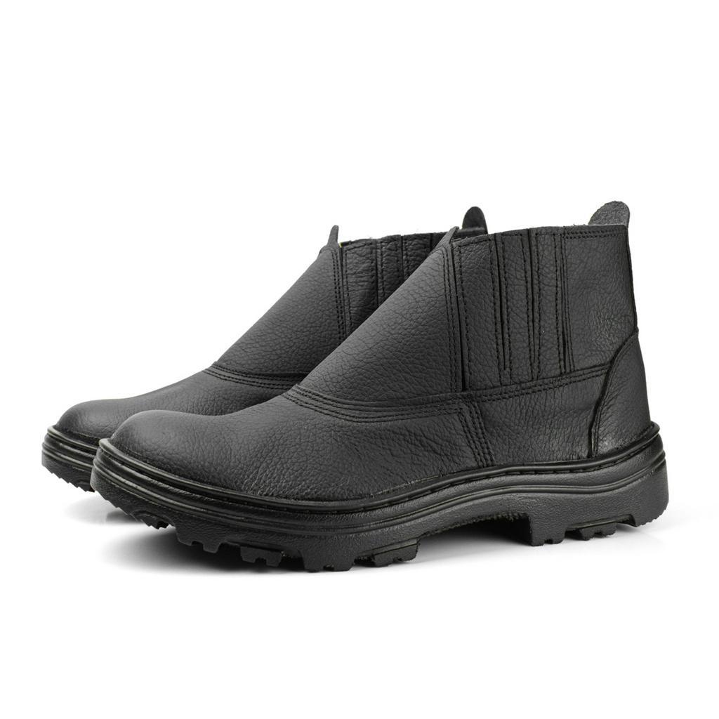 Botina masculina segurança couro legítimo bota cano baixo trabalho