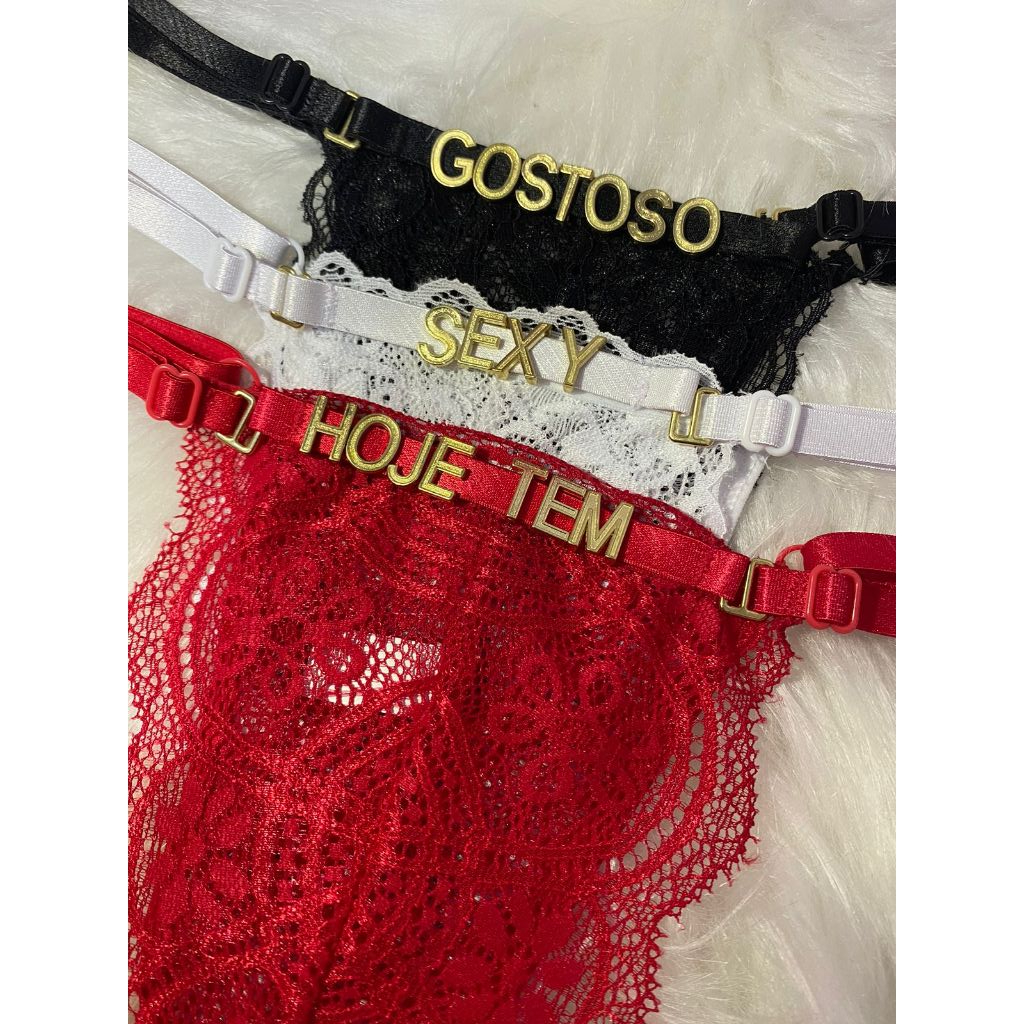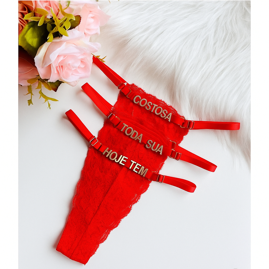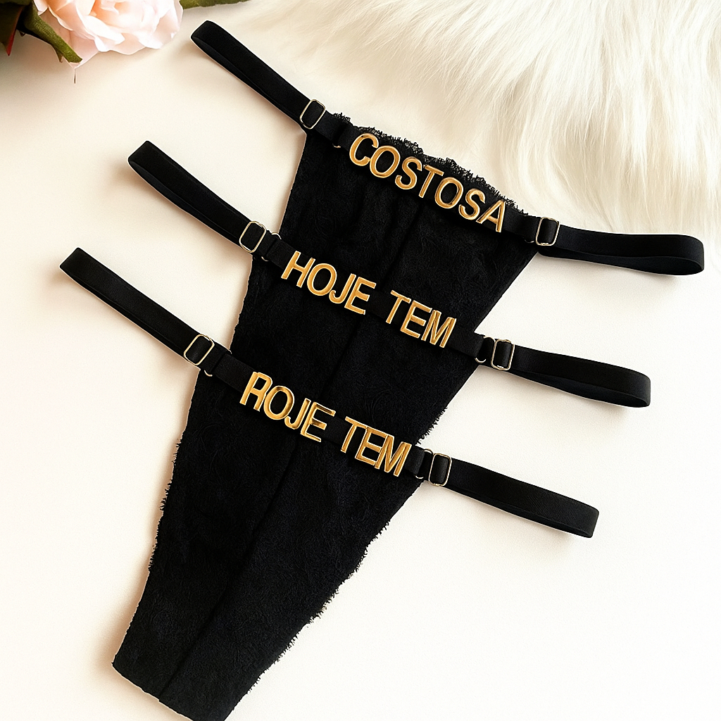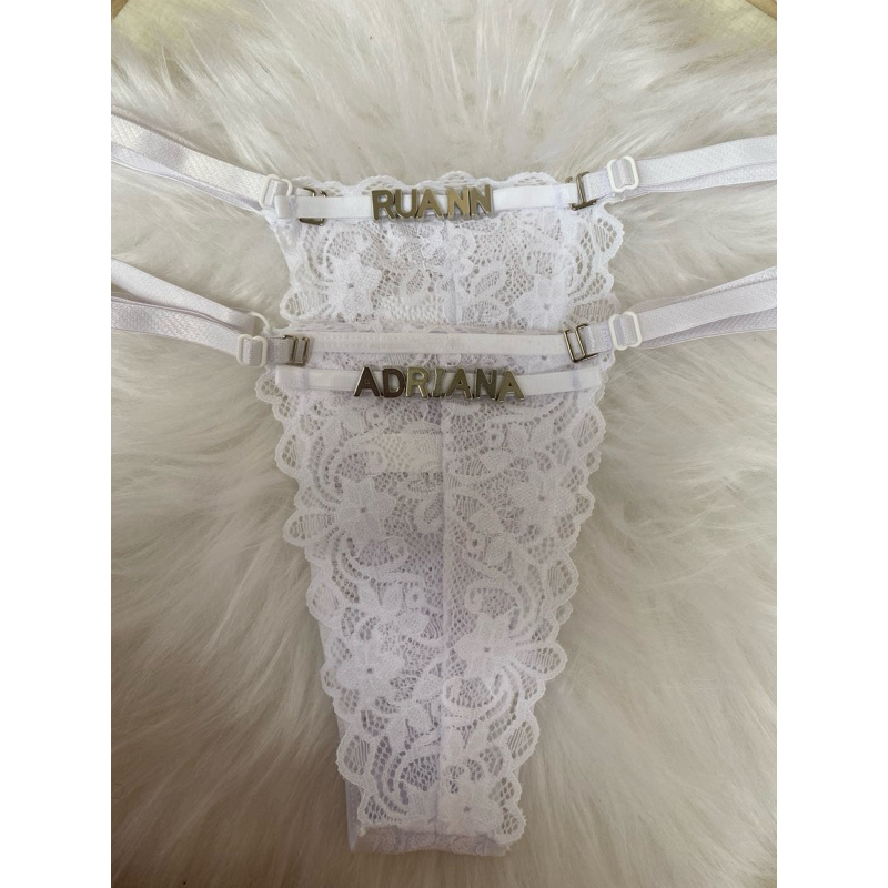 Kit Calcinha de Renda Fio Dental Tanga Personalizada Com Nome Regulagem