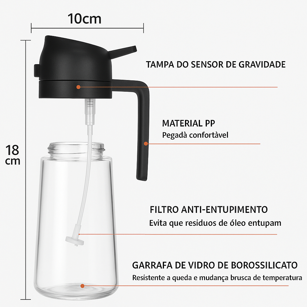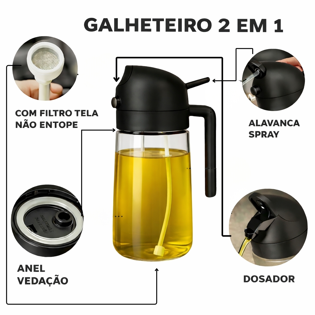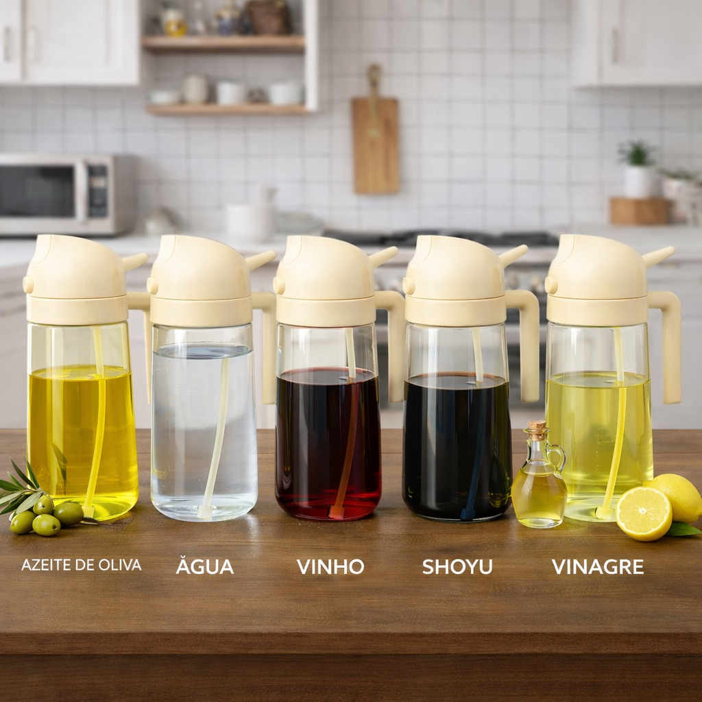 2 Spray Borrifador Azeite Dosador 2 em 1 Galheteiro vidro 470ml Óleo Vinagre Shoyu Cozinha