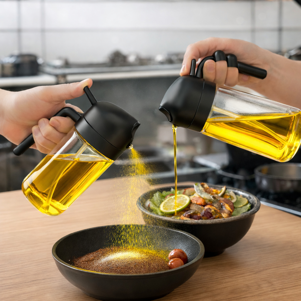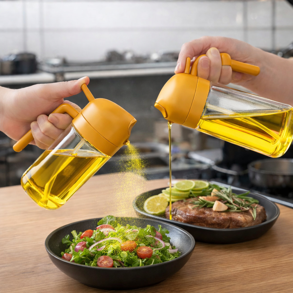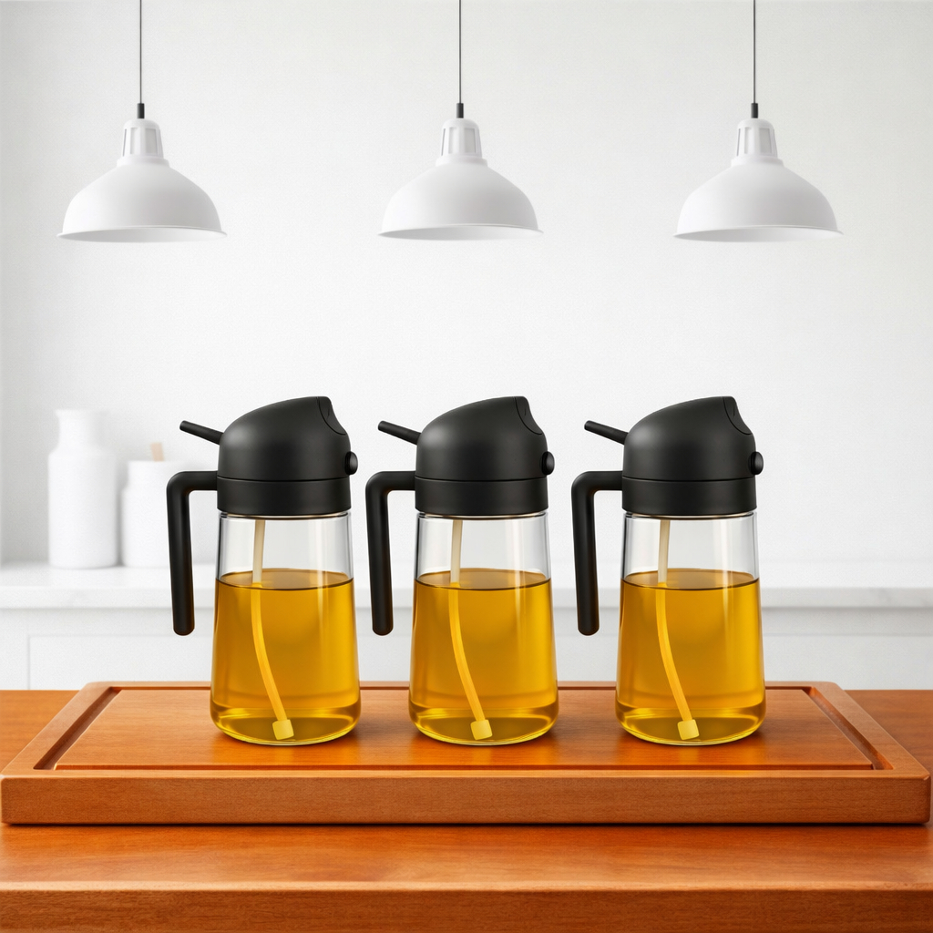 2 Spray Borrifador Azeite Dosador 2 em 1 Galheteiro vidro 470ml Óleo Vinagre Shoyu Cozinha