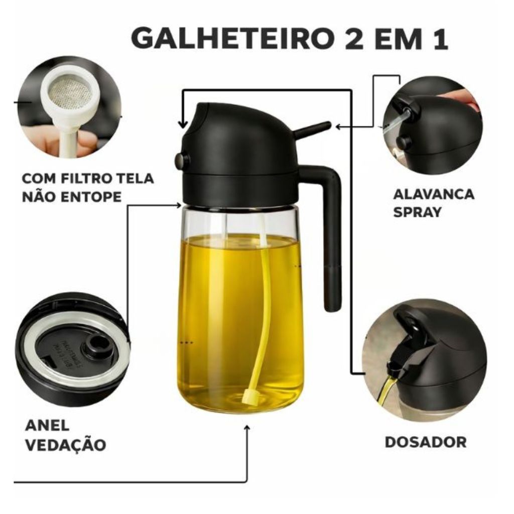 Galheteiro Spray de Azeite 2 em 1 Vidro 470ml Borrifador para Óleo Vinagre Shoyu Cozinha
