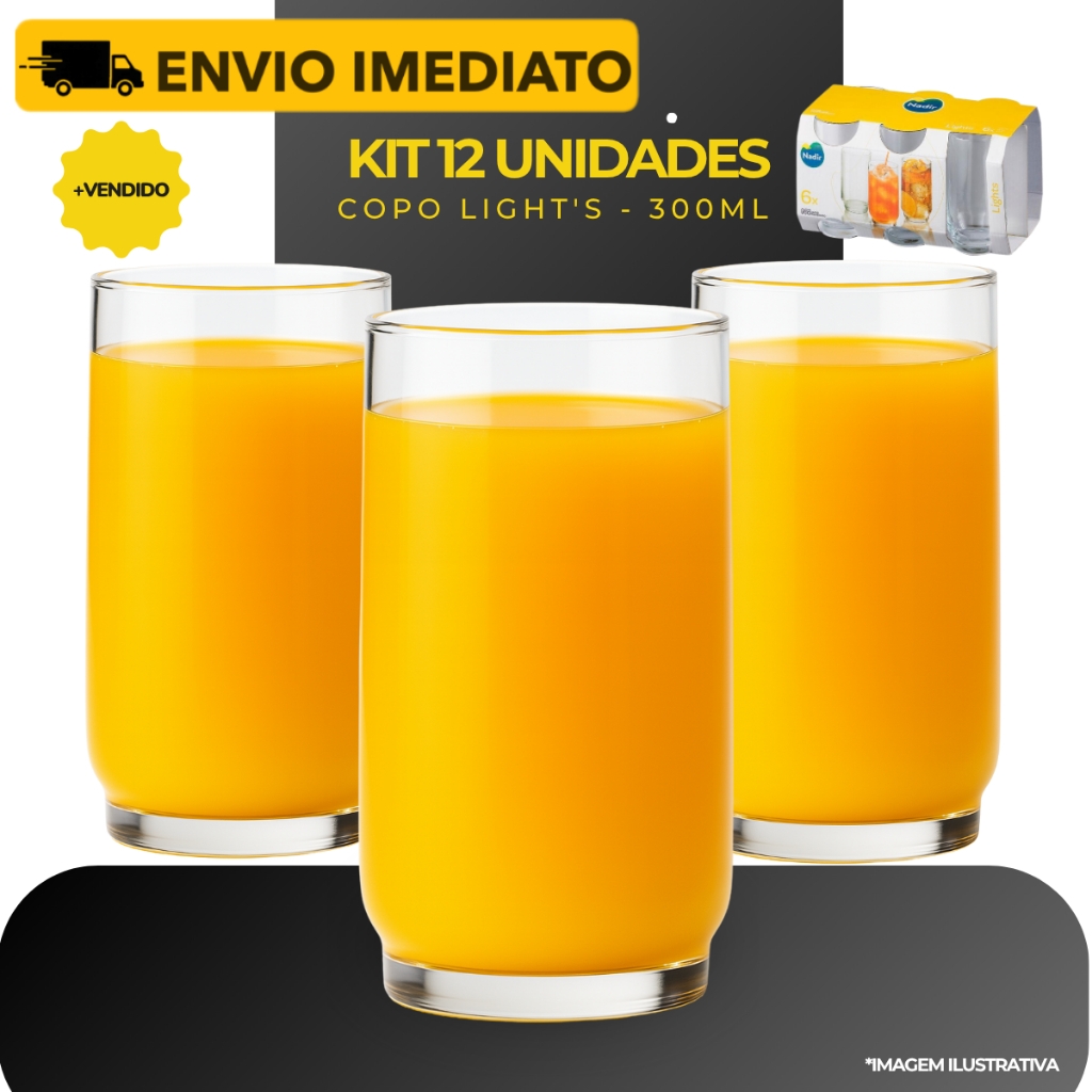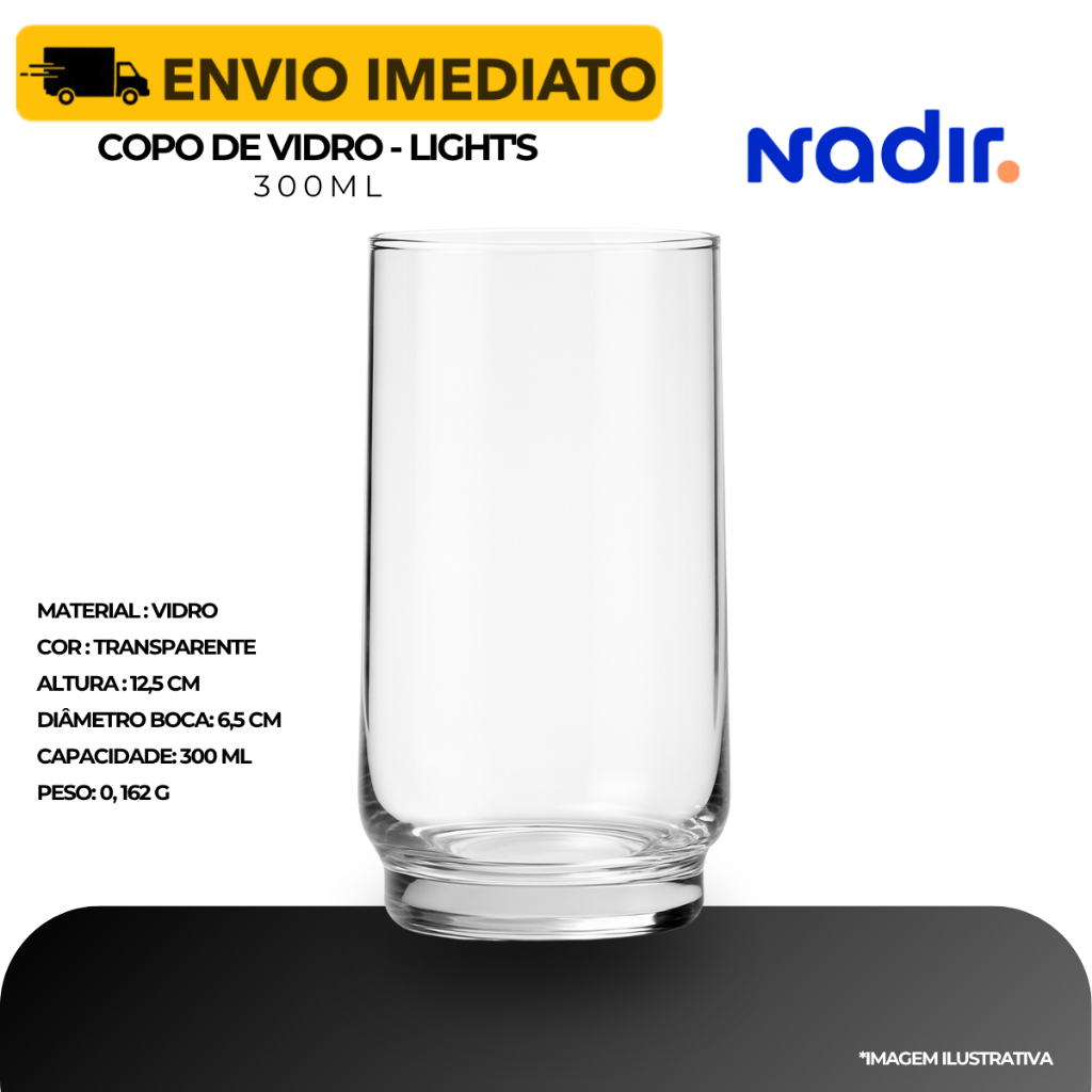 Kit Até 24 Copos Resistente 300ml Vidro Multiuso Light's - Nadir