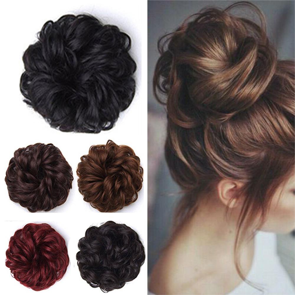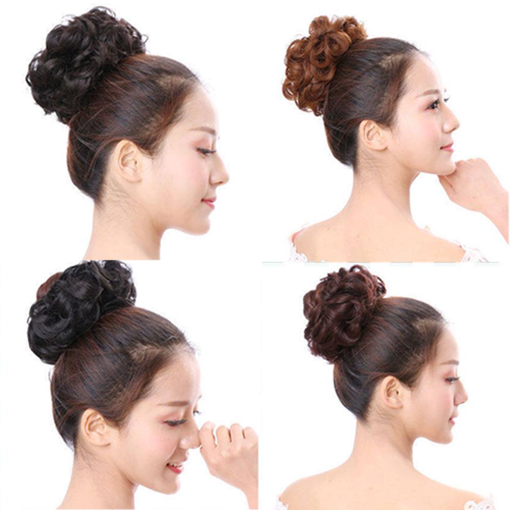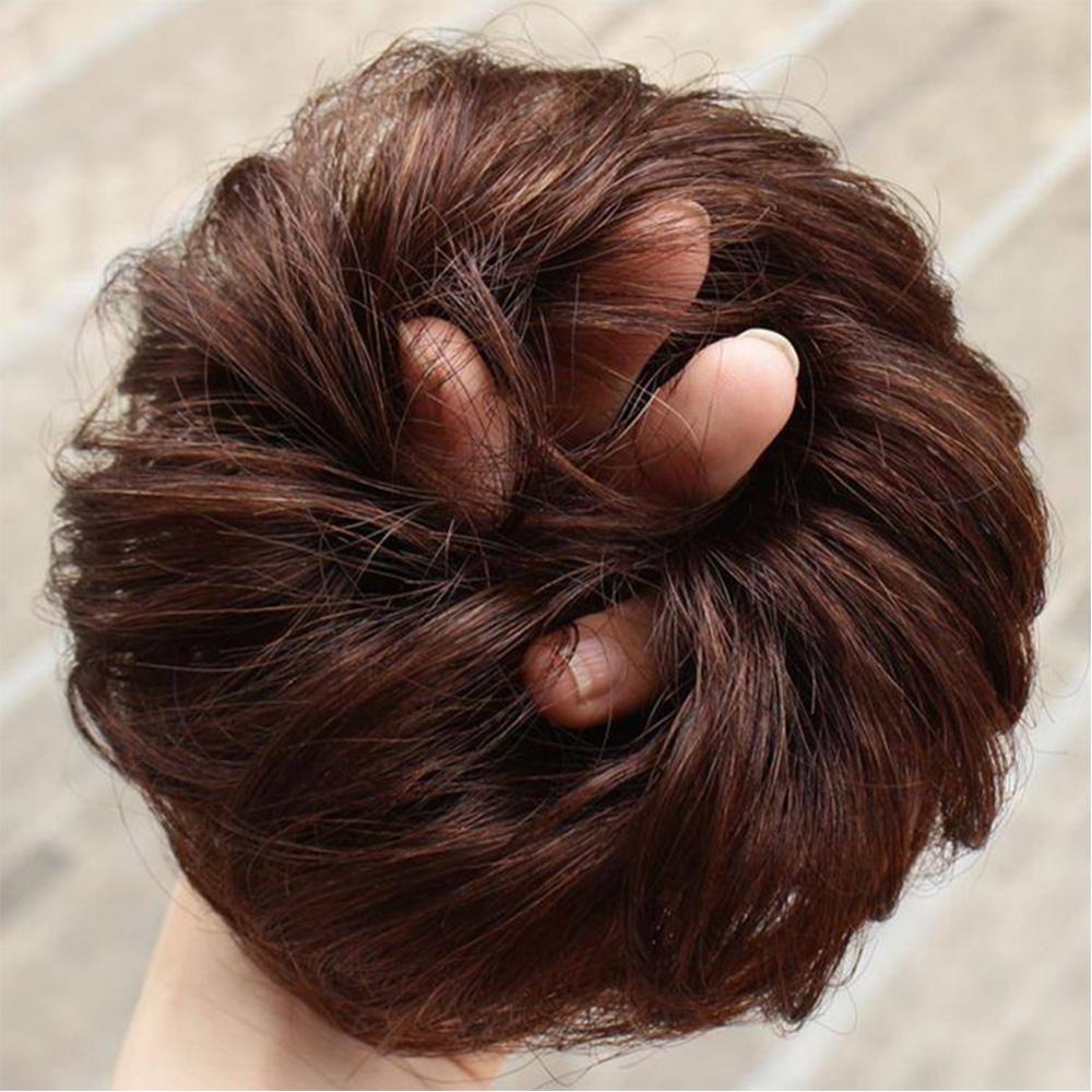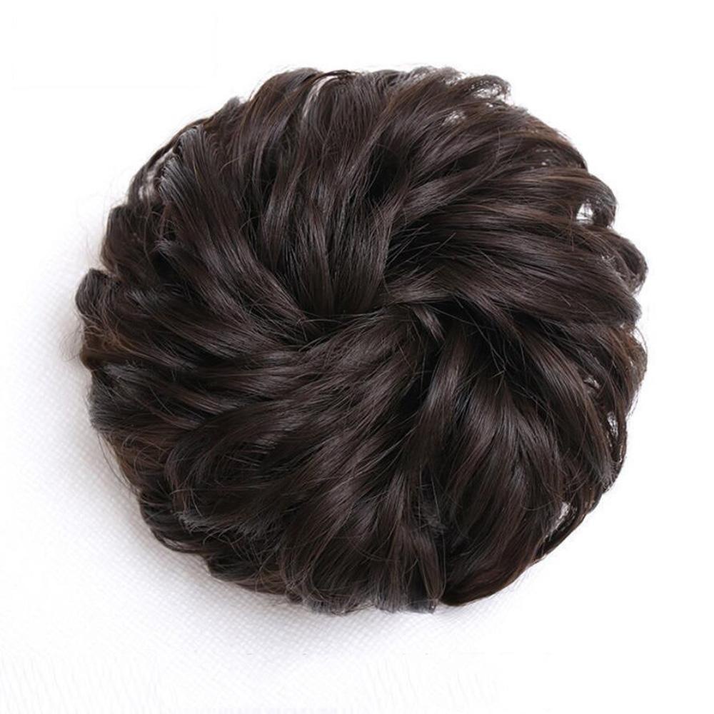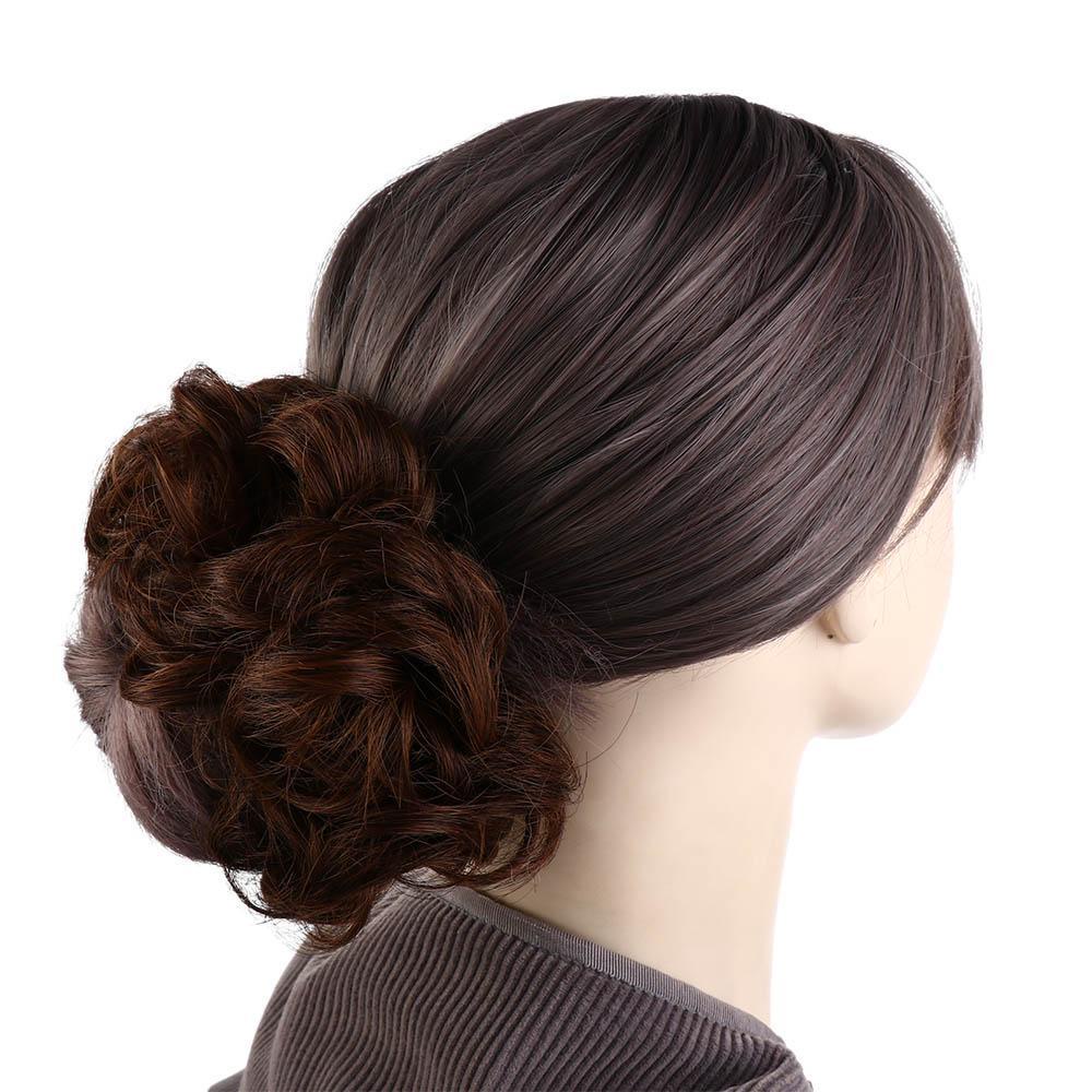 HUIYANG Cabelo Sujo Donut Bun Castanho Mulheres Peças De Faixa De Borracha Elástica Falsa Cacheado