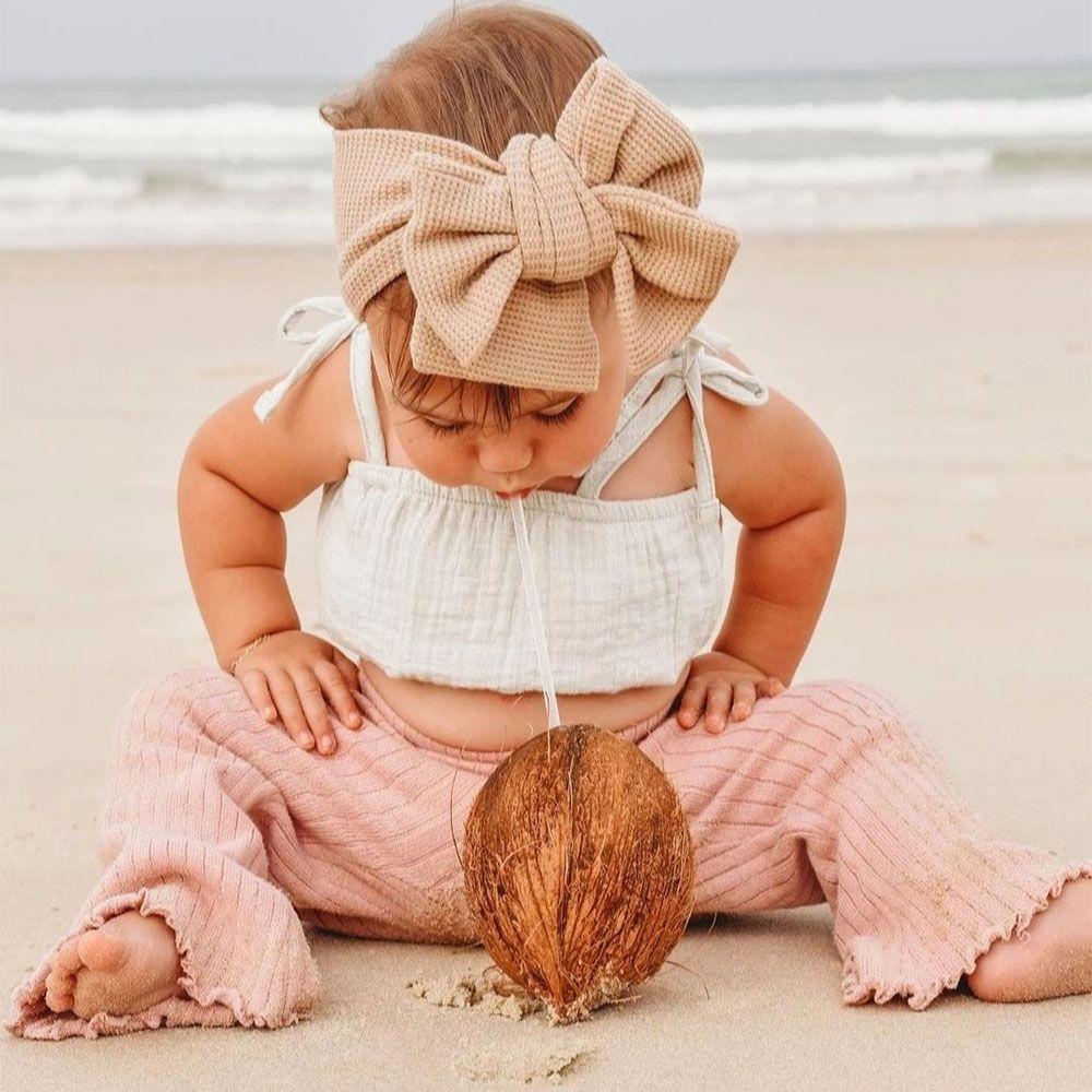 Faixa De Cabeça/Turbante De Bebê Com Elástico/Flexível/Tecido Laço Para Meninas Waffle