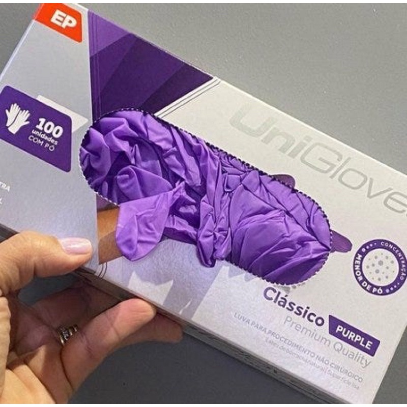 Luva de Procedimento Roxa Purple Com Pó - Unigloves