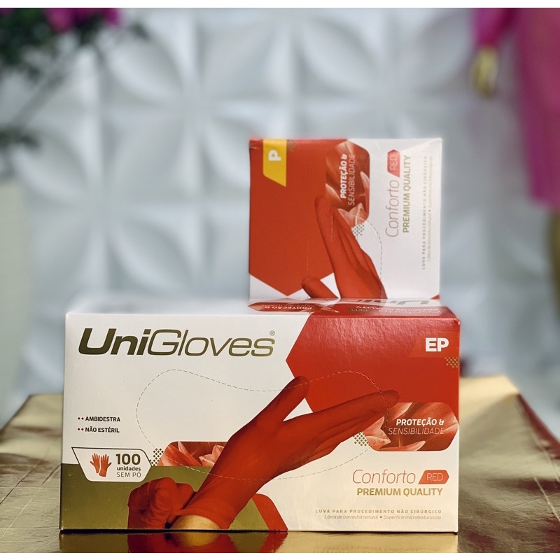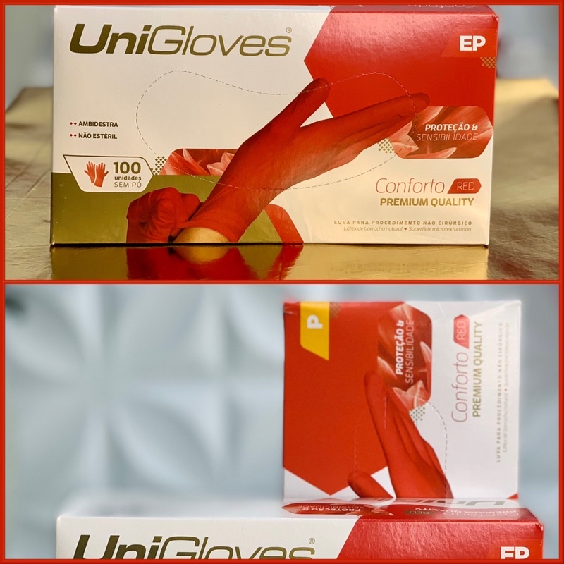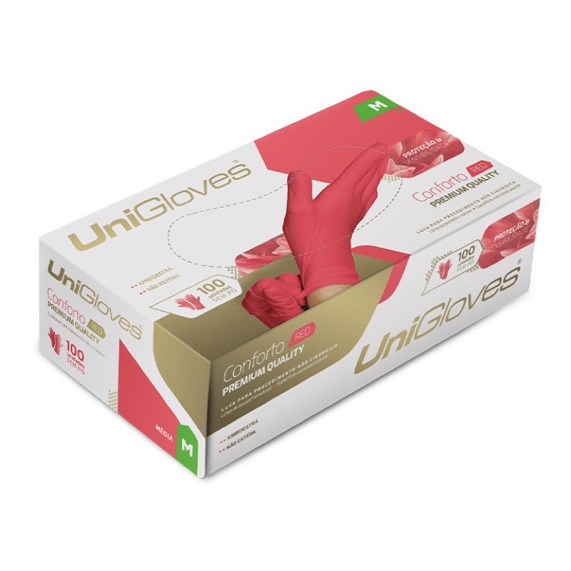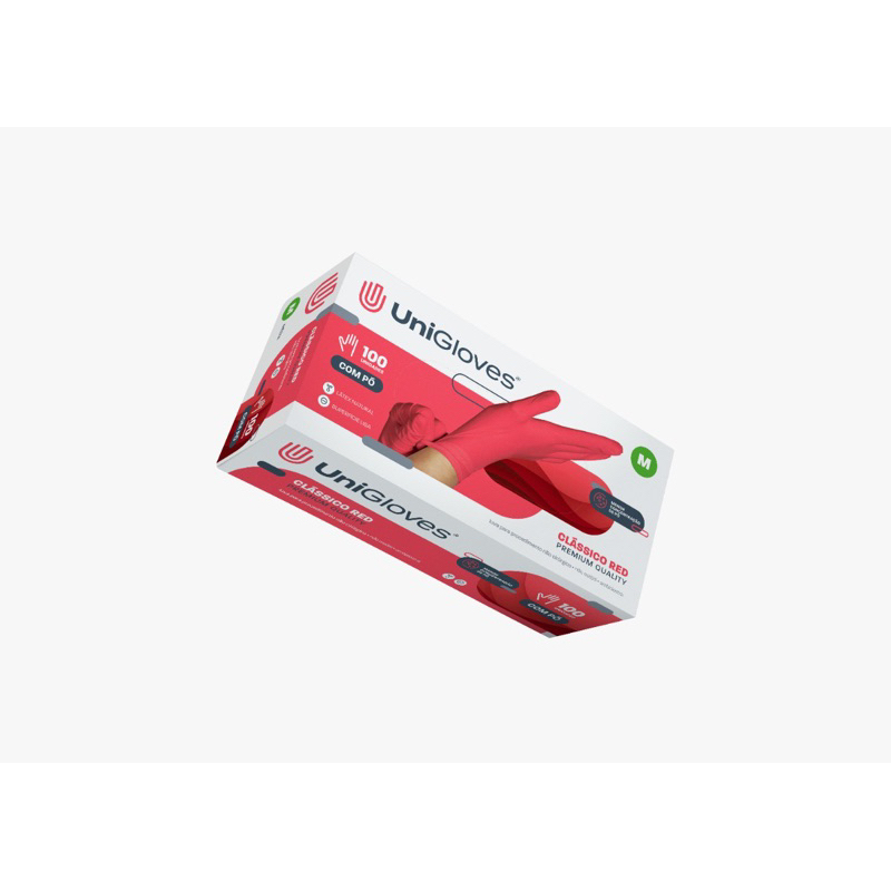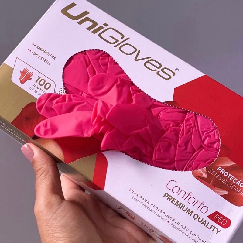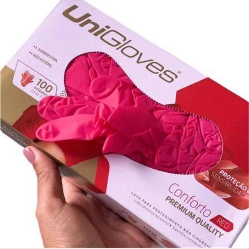 LUVA LÁTEX RED ROSA DESCARTÁVEL CEREJA ROSA UNIGLOVES - CLASSIC RED QUALIDADE PREMIUM CAIXA COM 100 UNIDADES