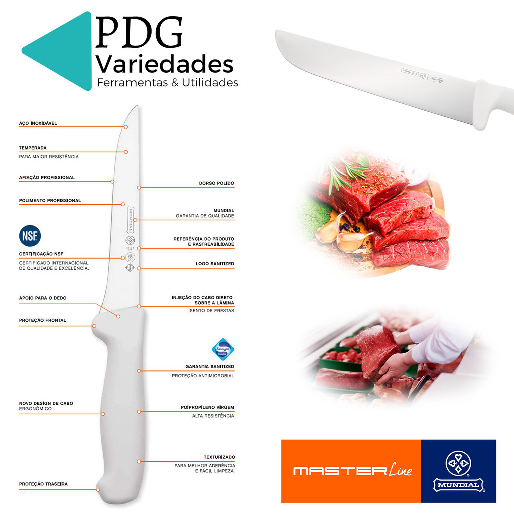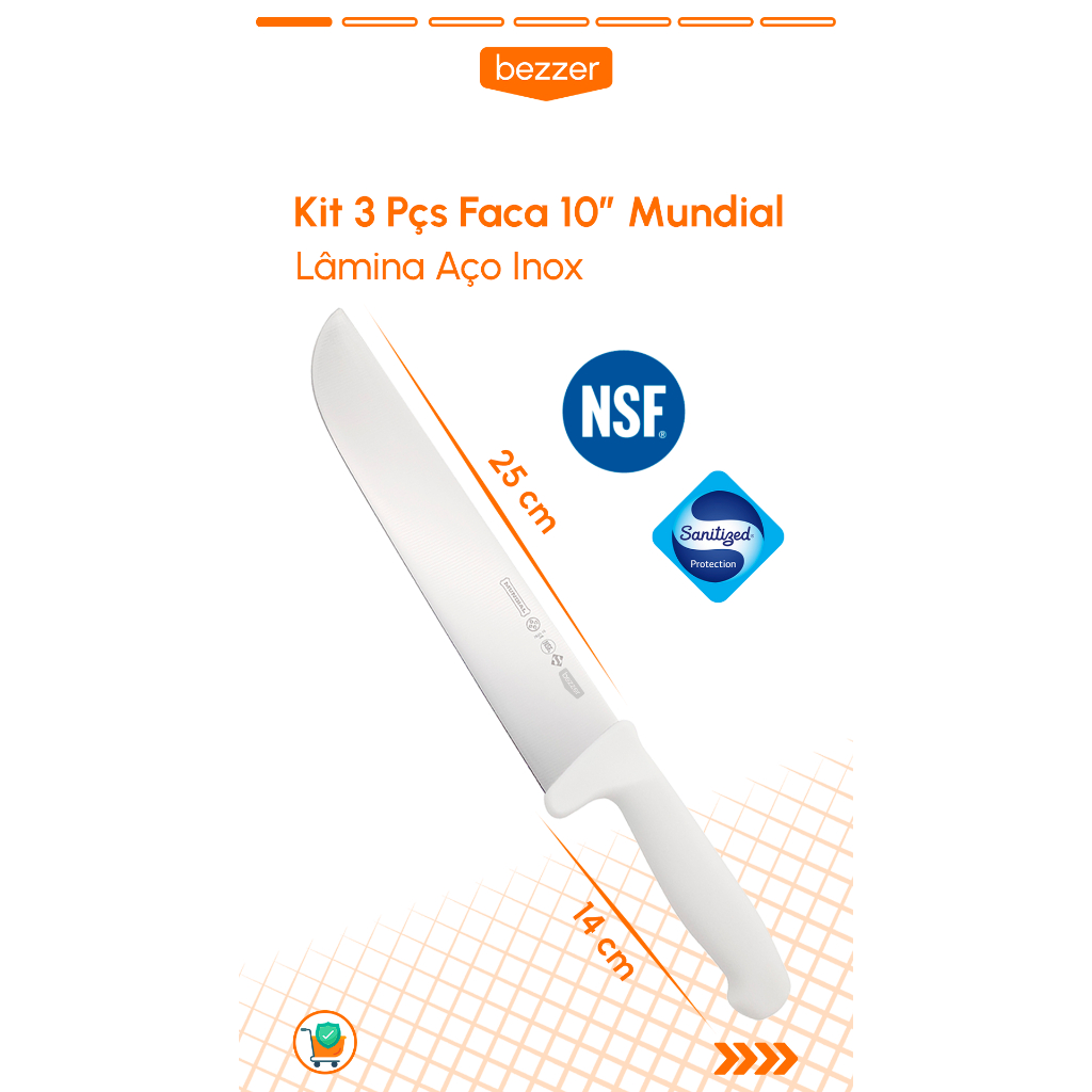 Faca Para Carne e Açougue 10 Polegadas Mundial Cabo Antibacteriano 7820-10 Cozinha Profissional