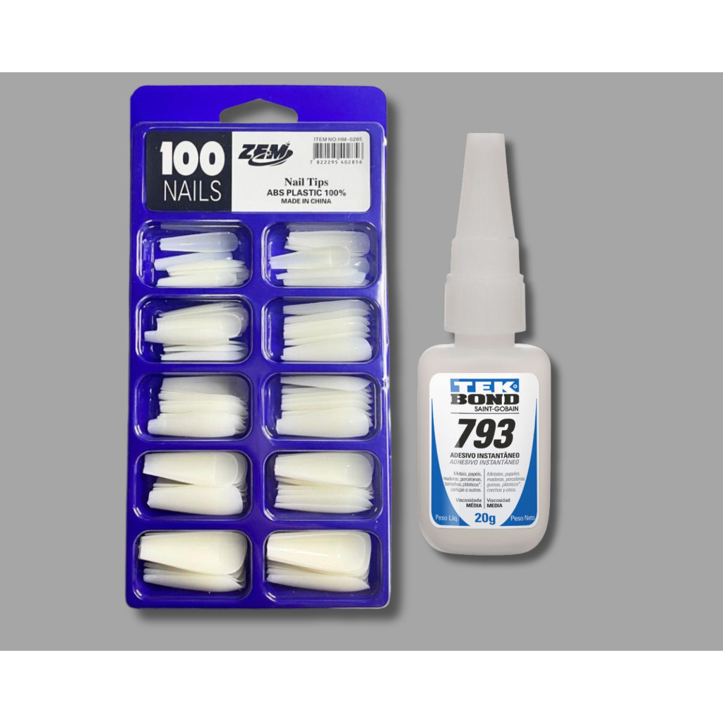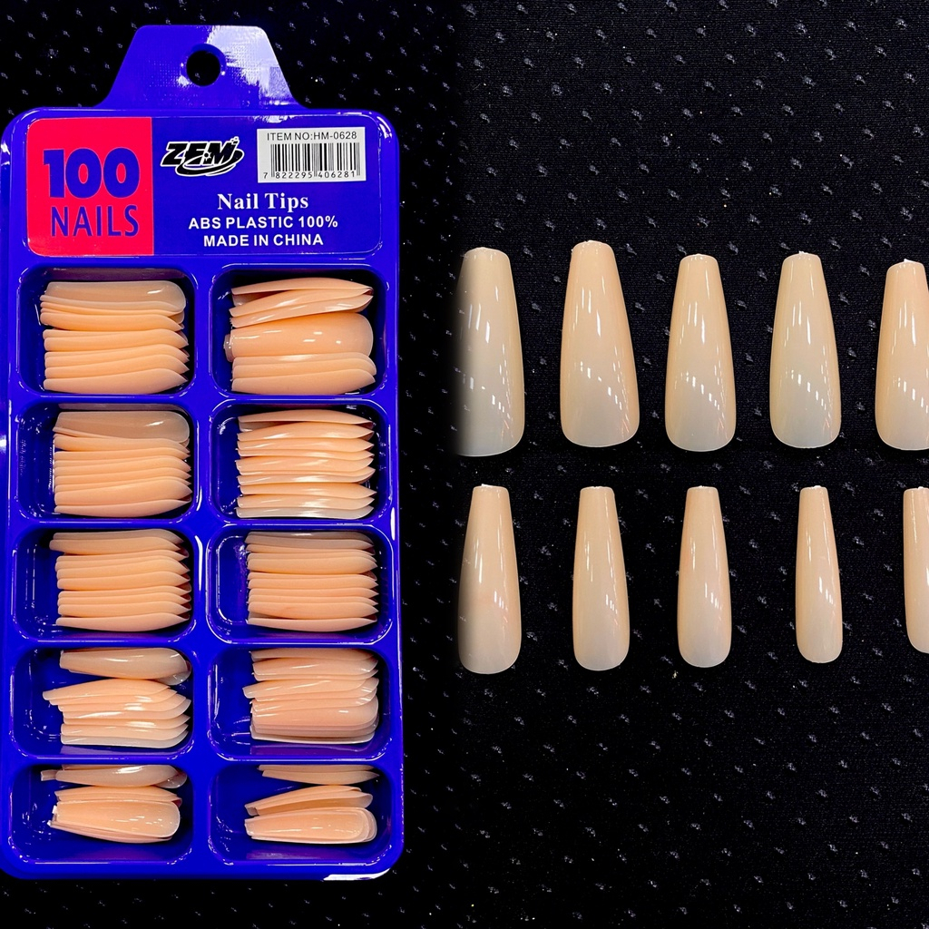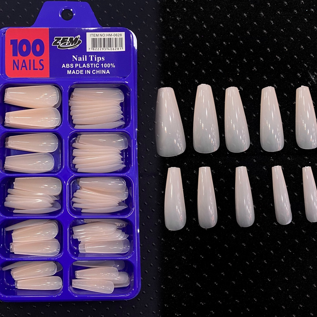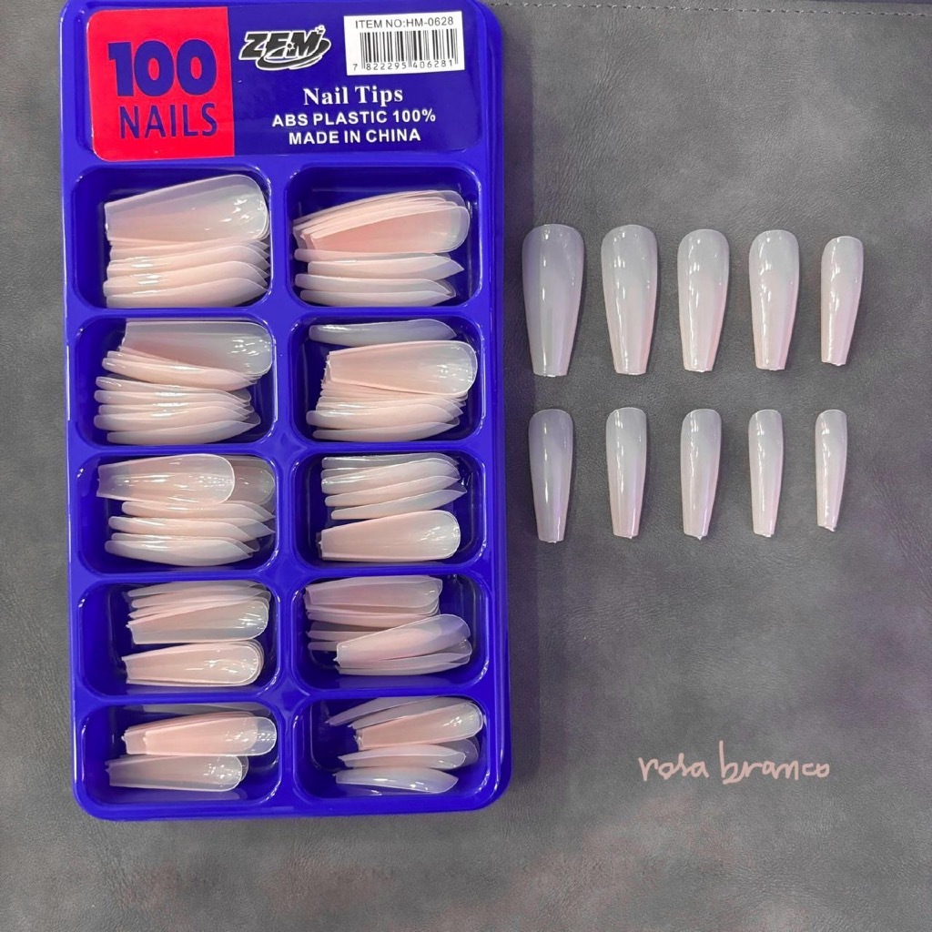 Kit 100 Unhas Tips postiça Bailarina Natural (Branca/transparente)