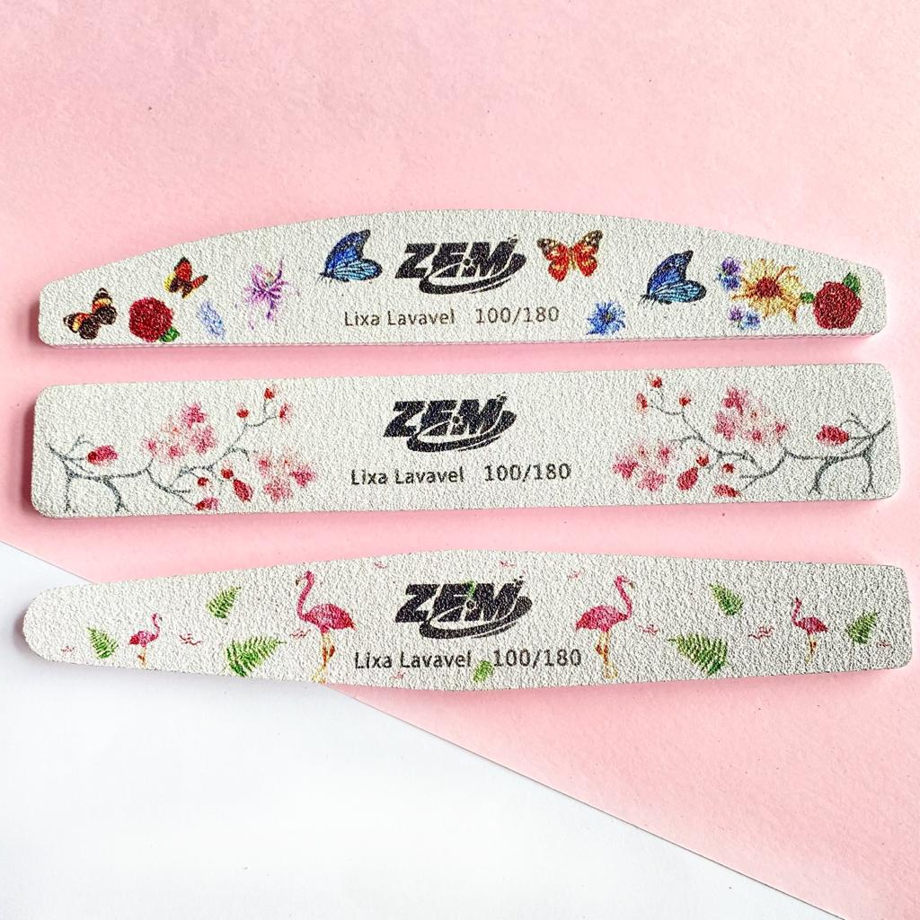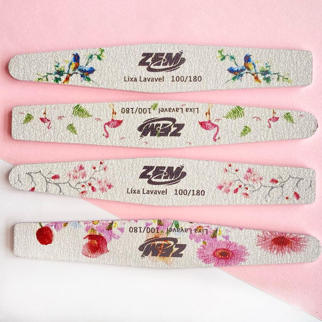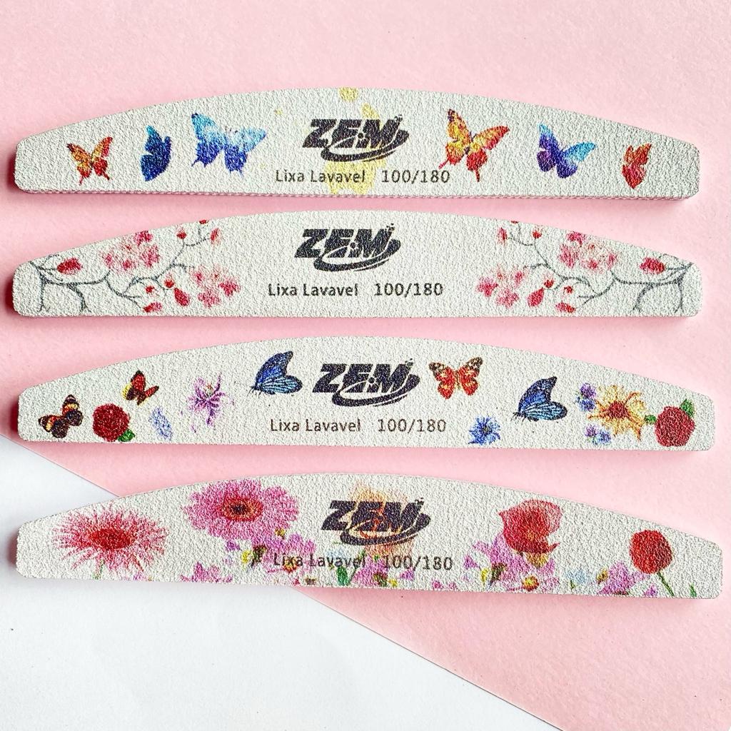 Kit 10 Lixa Decorada Lixa Lavavel /Boomerang/Caixao/Banana ZEM 100/180 Unha Porcelana Acrygel Fibra