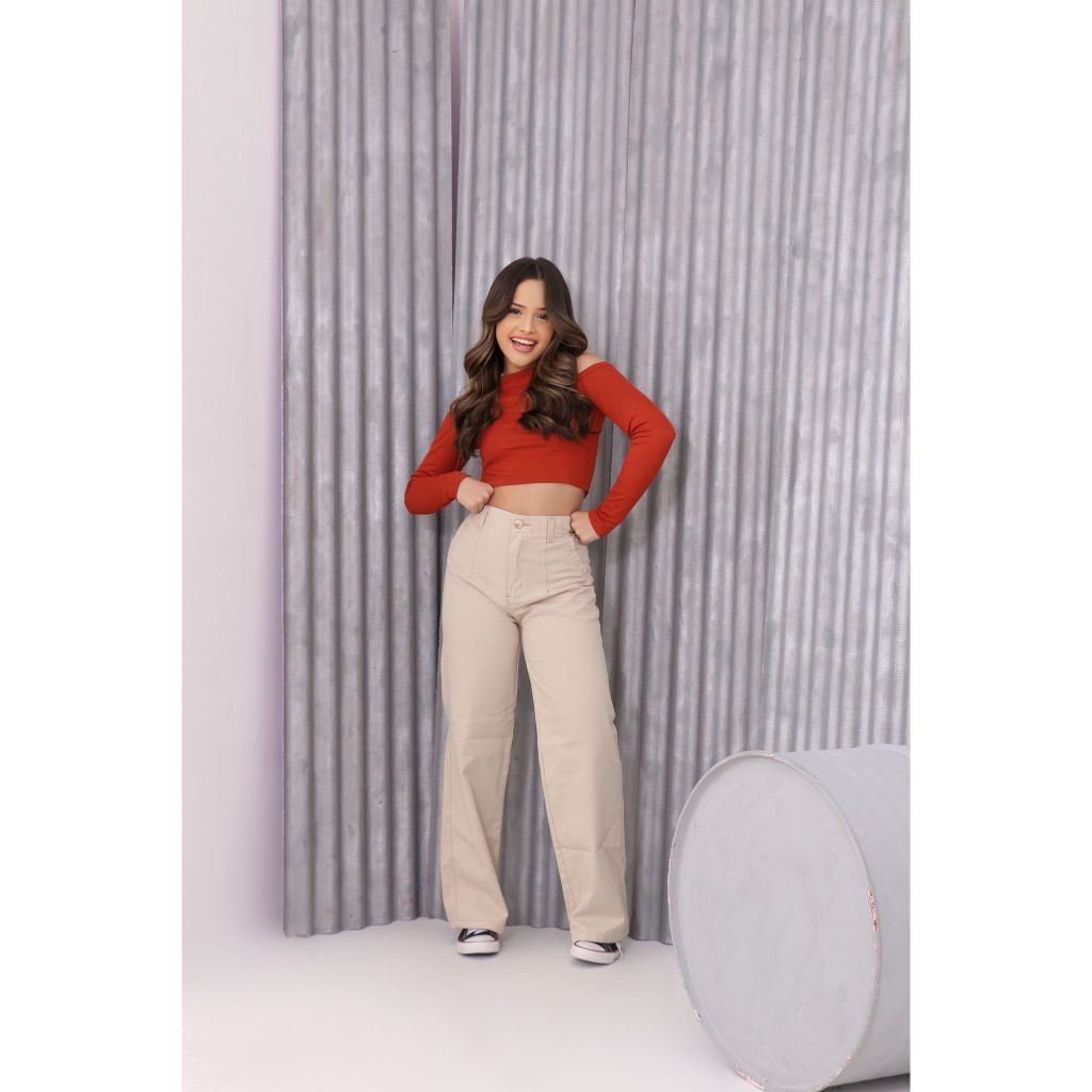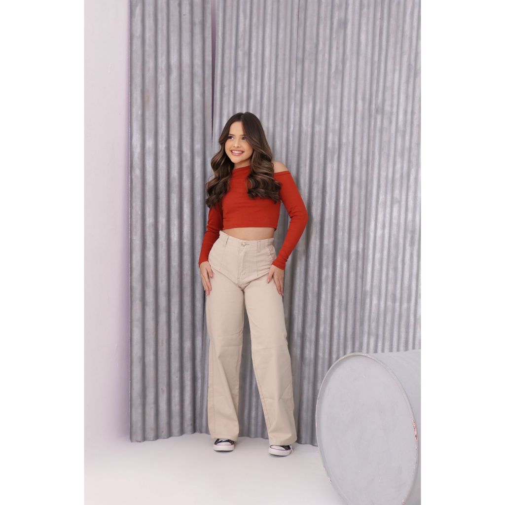 Calça Bege Jeans Wide Leg Moda Teens Juvenil Adolescente 10 12 14 16