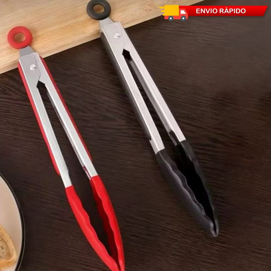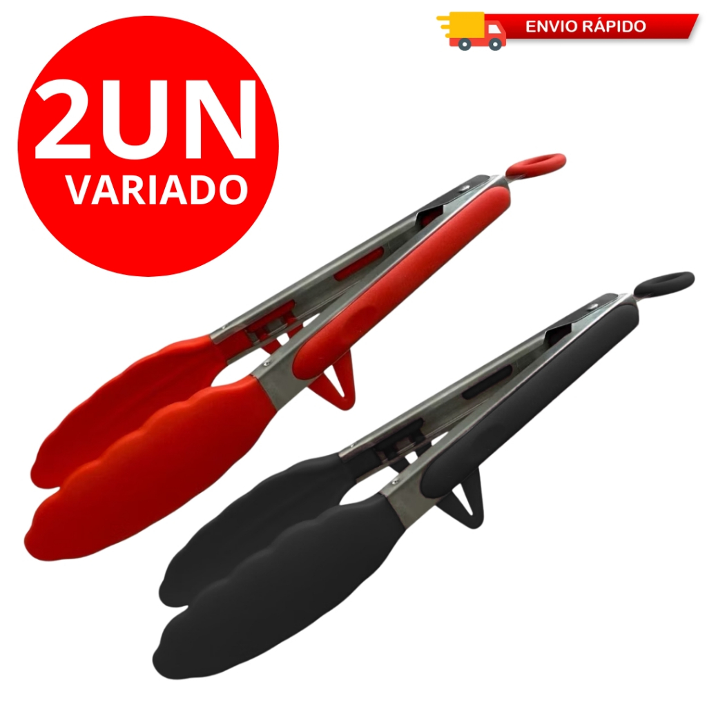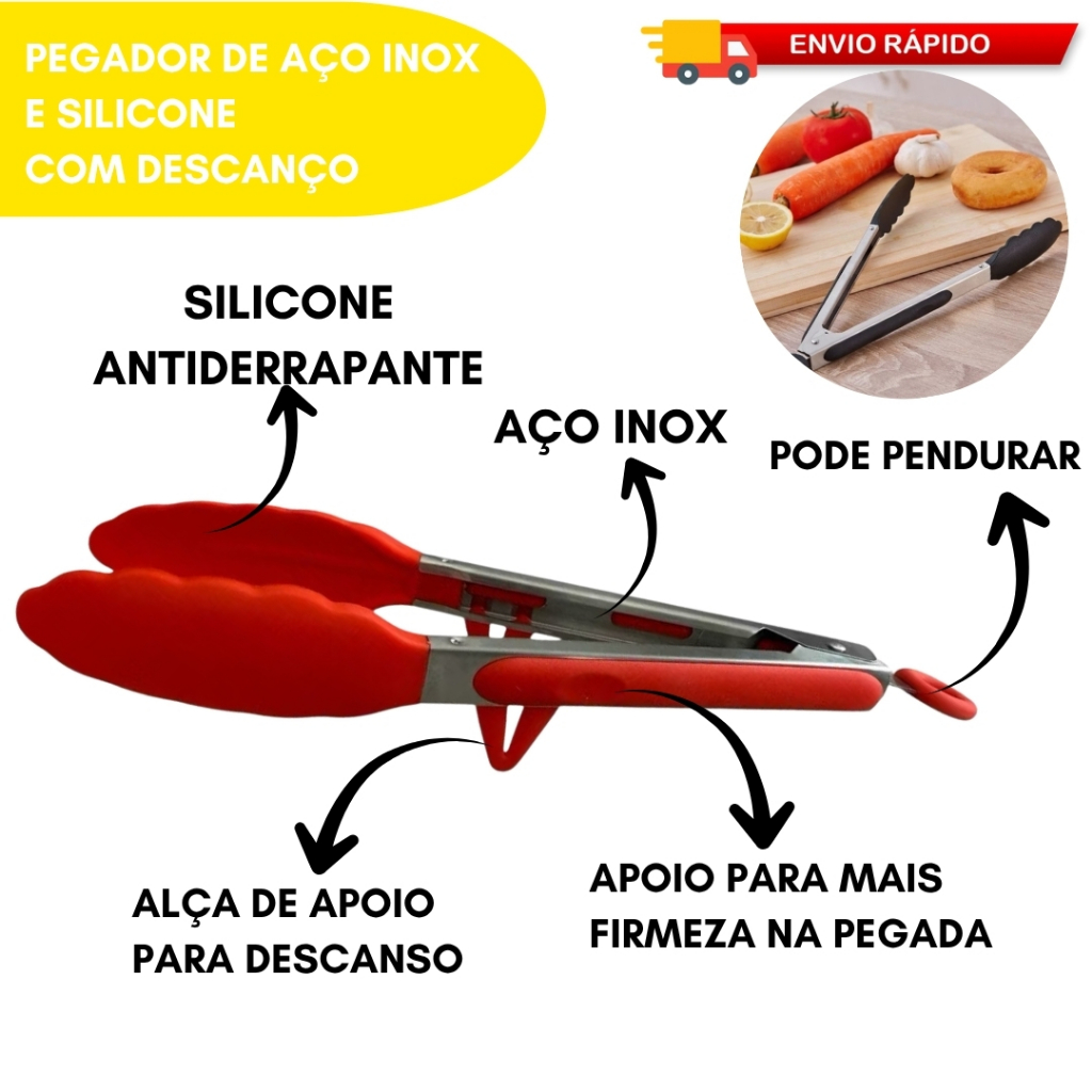 Kit 2 Pegador De Silicone e Inox Para Carne Churrasco Salada Cozinha Alta Qualidade Com Suporte