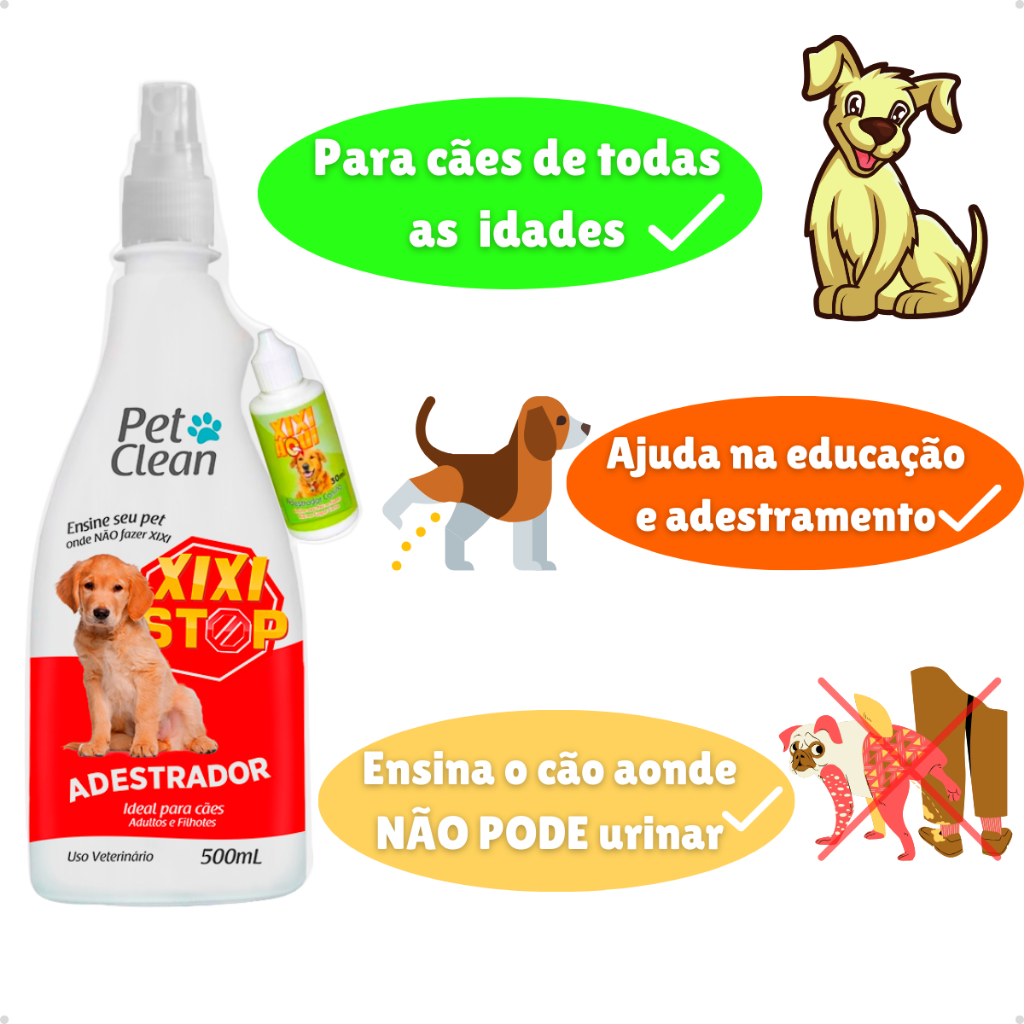 Kit Adestrador Educador Sanitário Cachorro Adestramento Pet Clean Xixi Stop 500 ml + Xixi Sim 30 ml