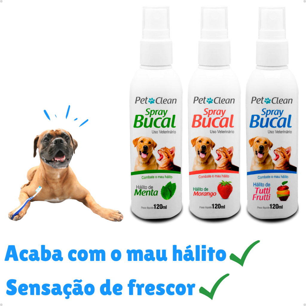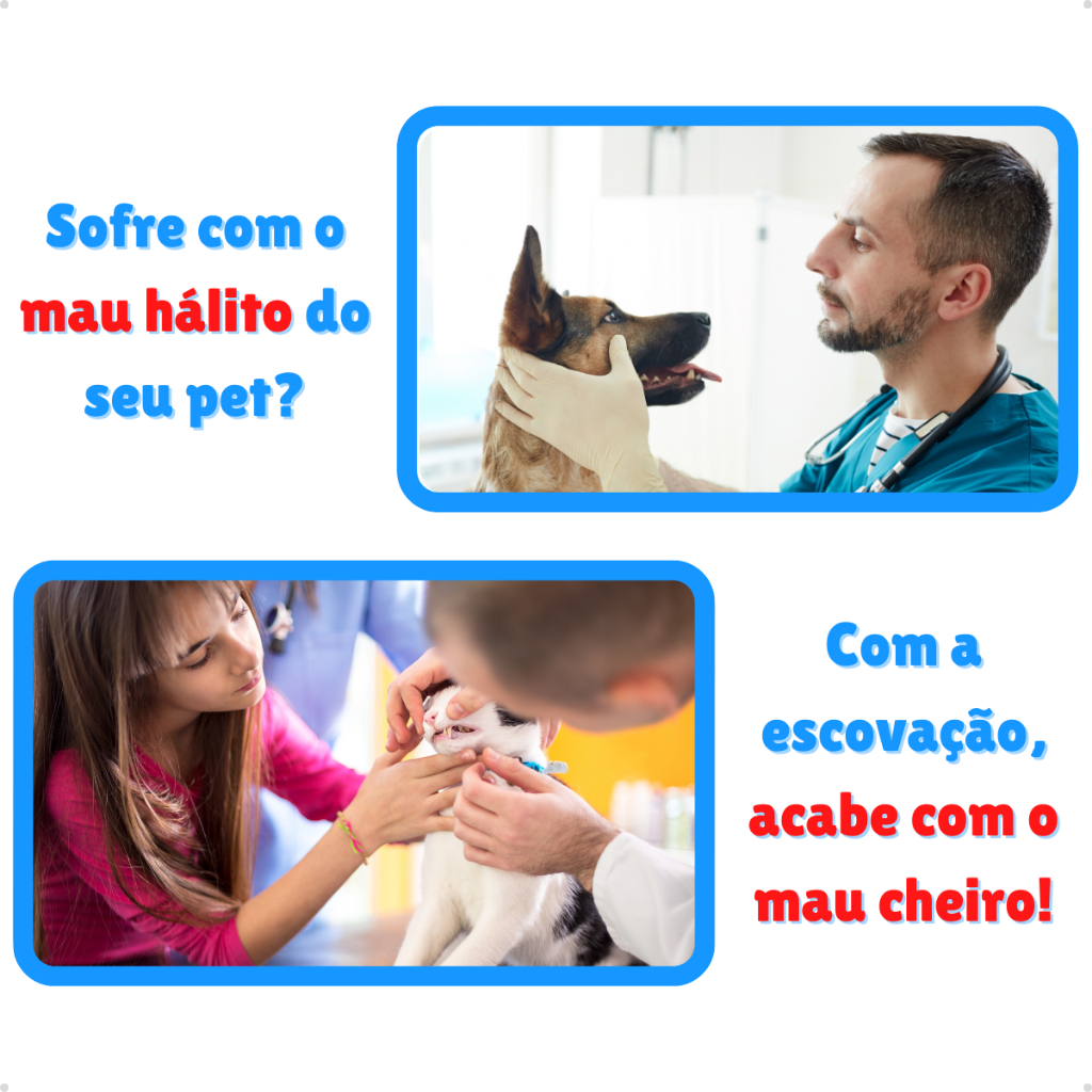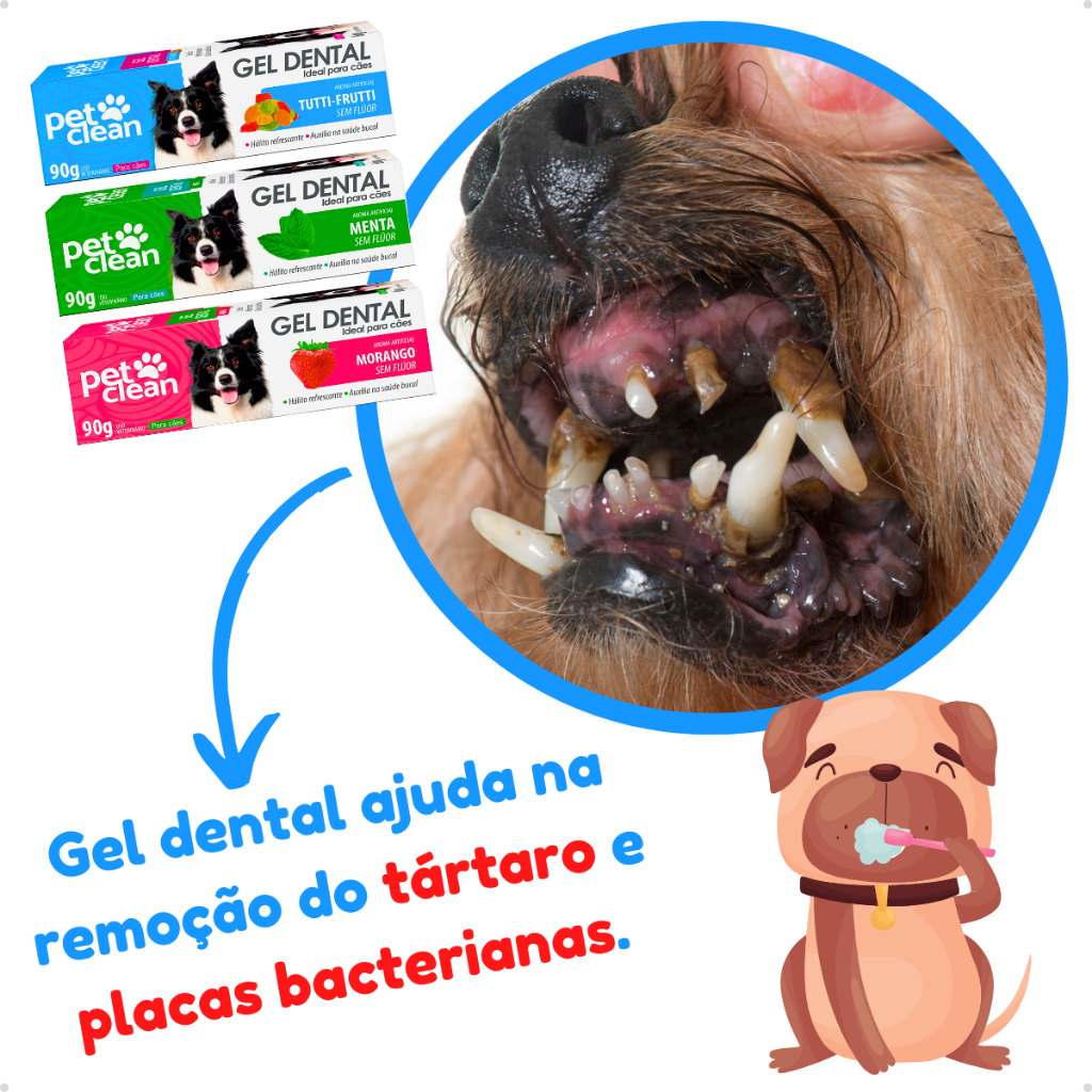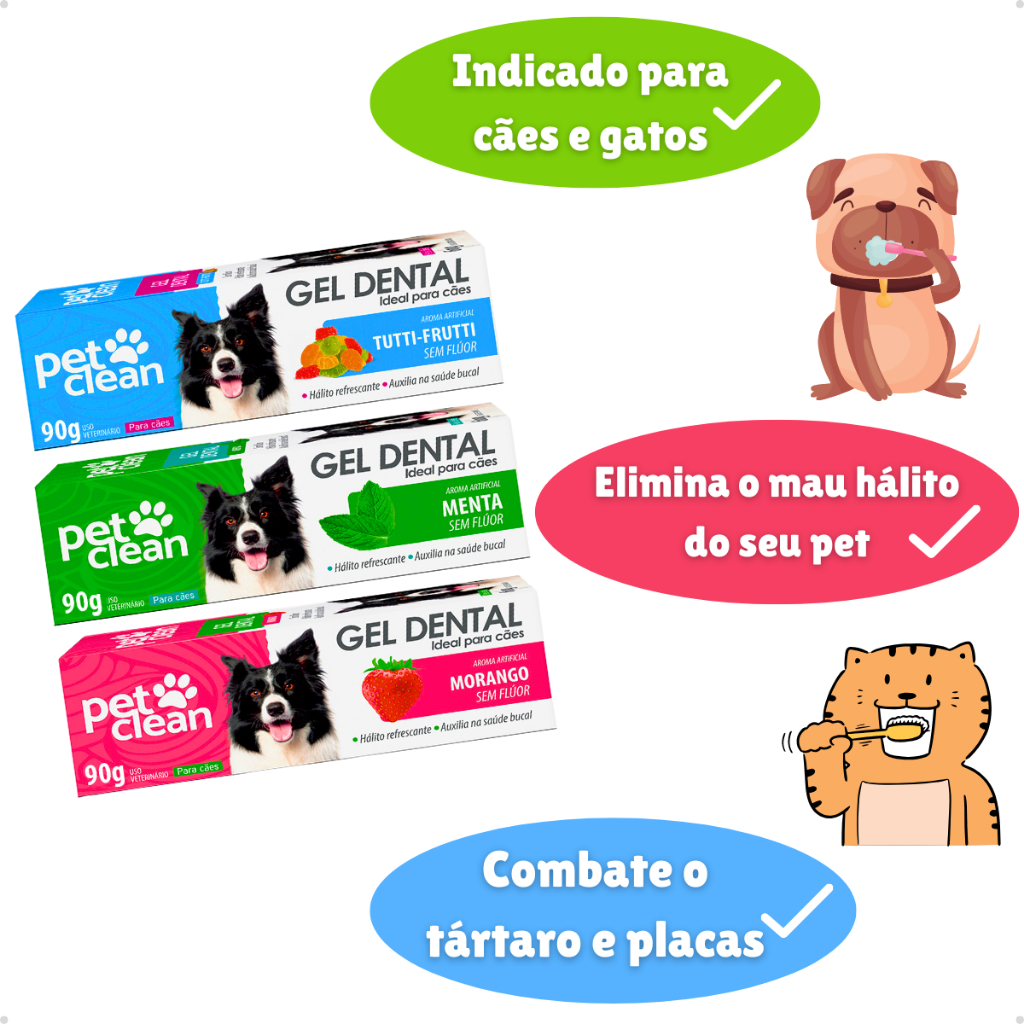 Kit Gel Dental Pasta de Dente Pet Clean + Spray Bucal + Escova de Dente Dupla para Cachorro e Gato