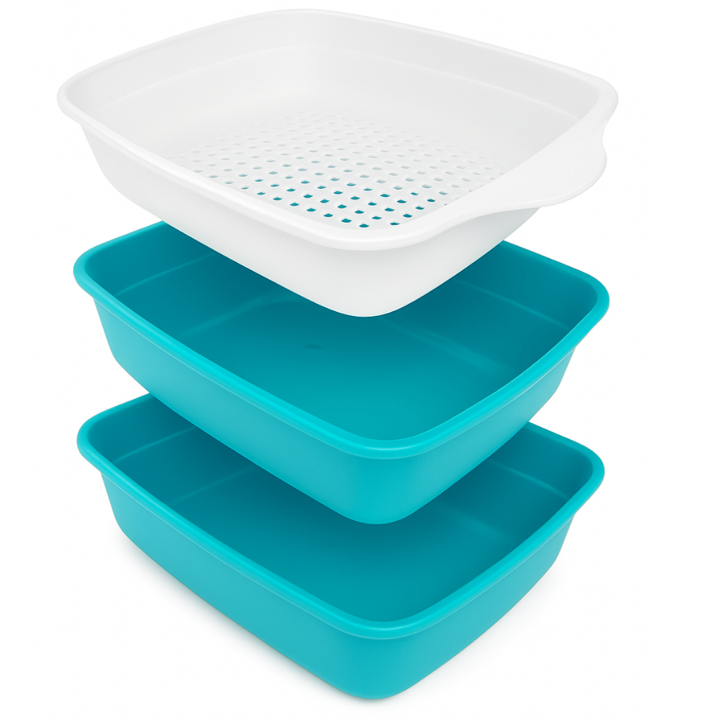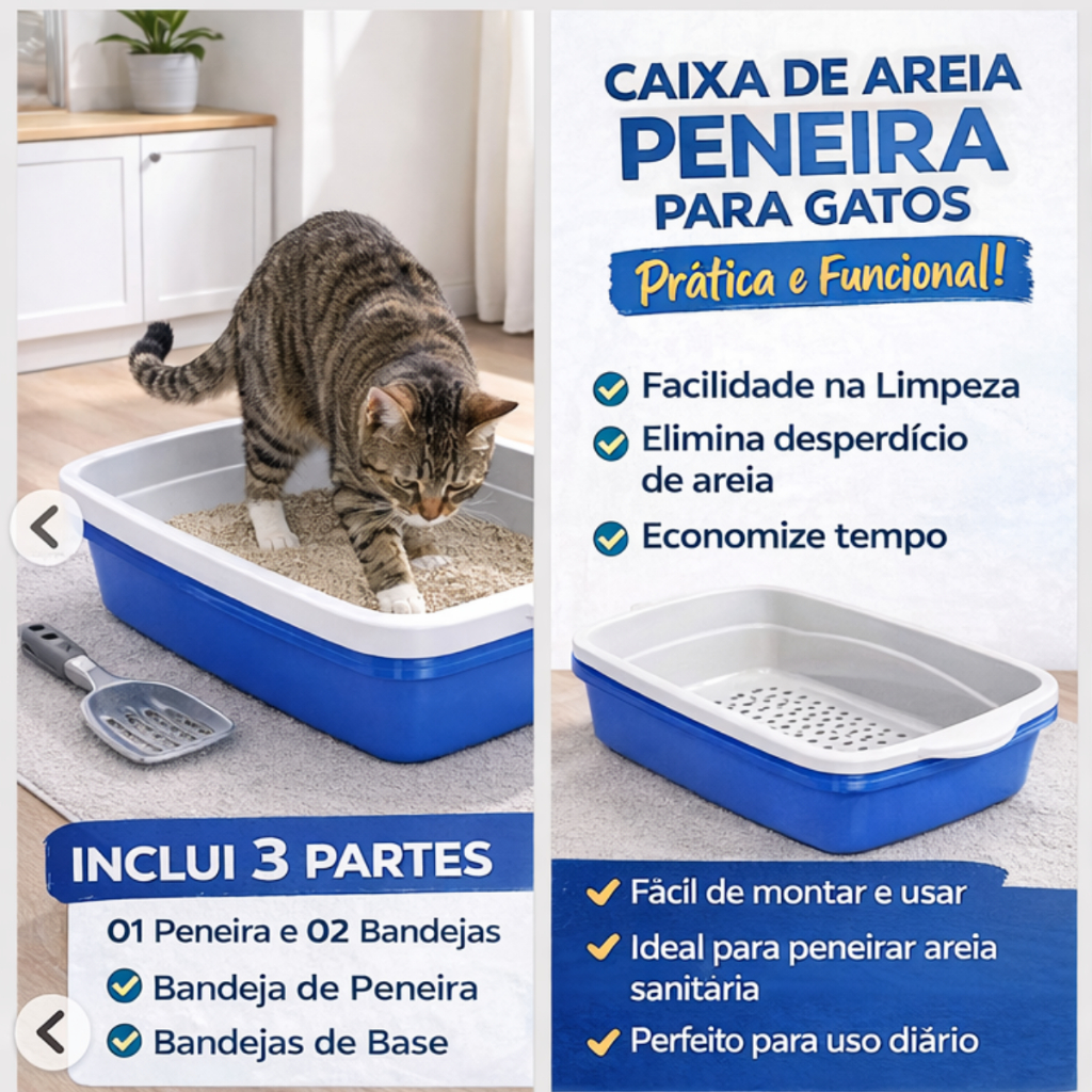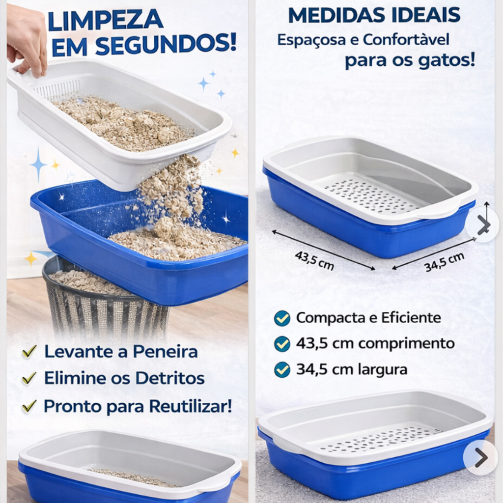 Caixa de Areia Para Gatos Banheira Higiênica Furba 3 Peças Com Bandeja Sanitária e Peneira