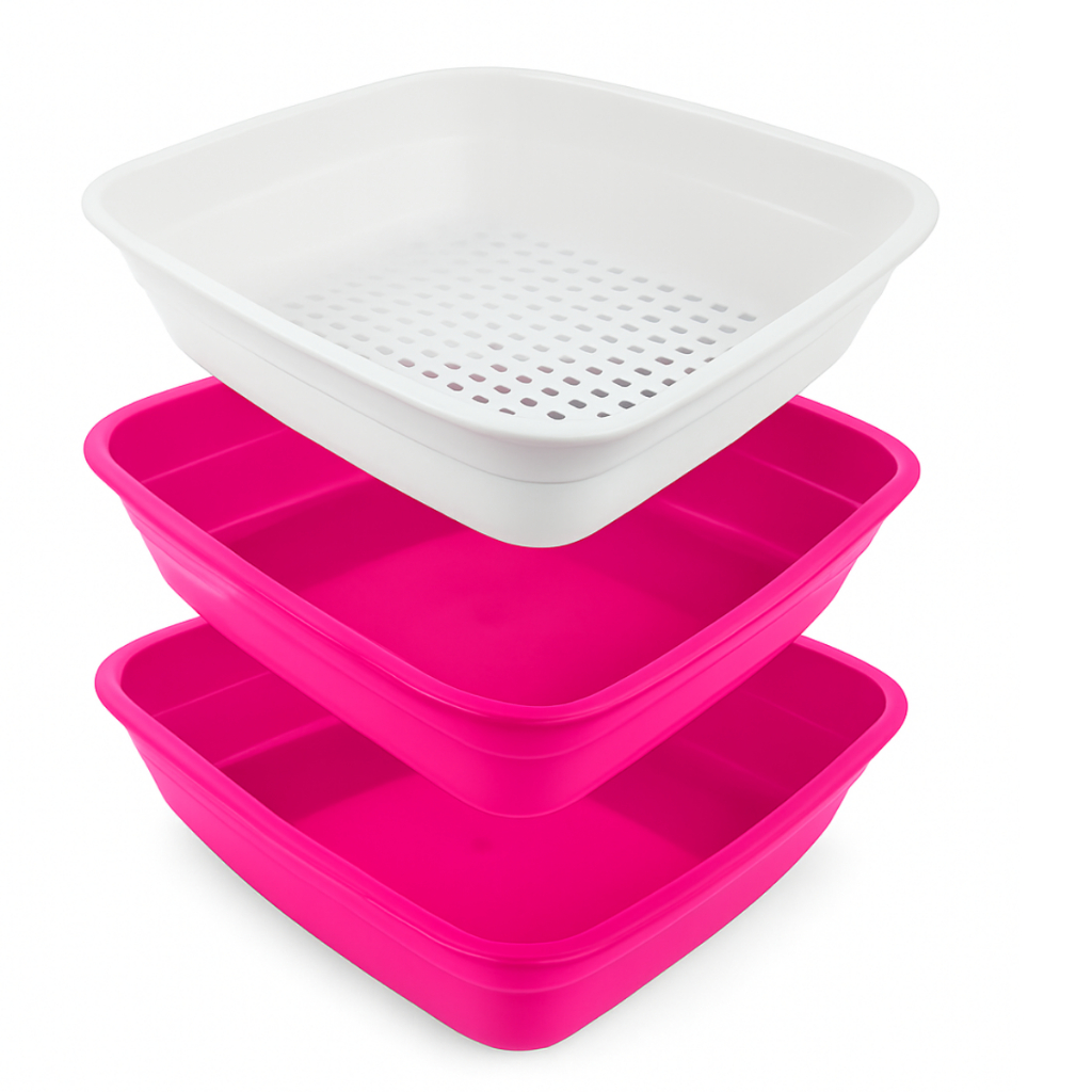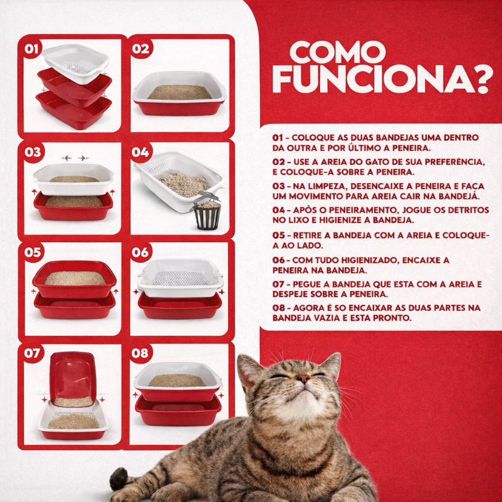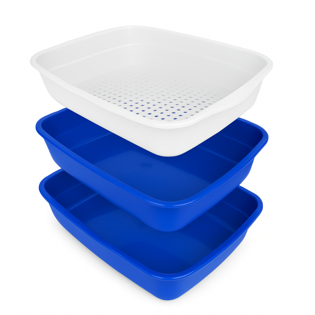 Caixa de Areia Para Gatos Banheira Higiênica Furba 3 Peças Com Bandeja Sanitária e Peneira