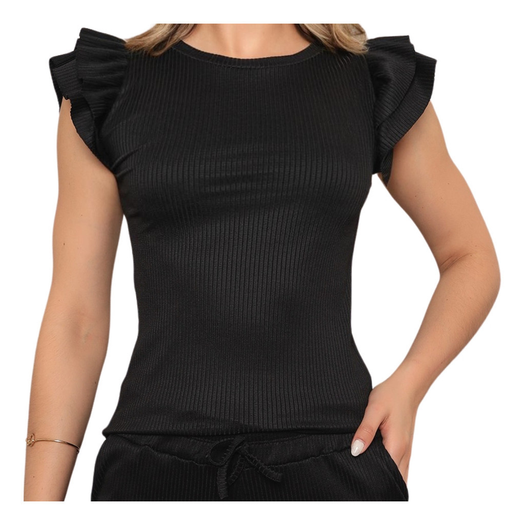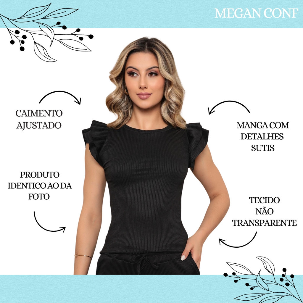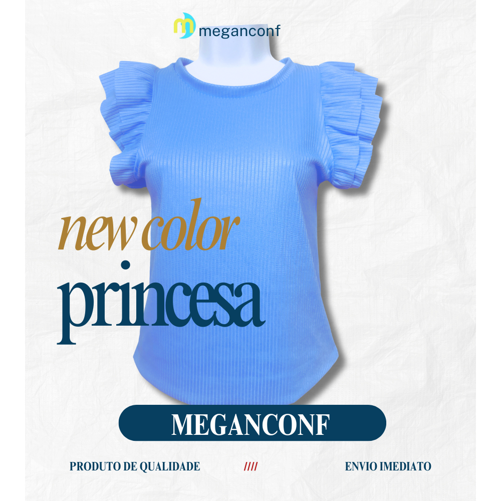 Blusa Canelada Manga Princesa Casual Feminina Básica Tshirt Justa Confortável Barata Blusinha