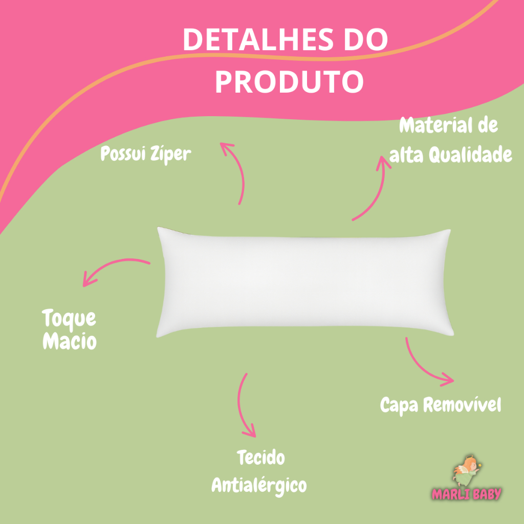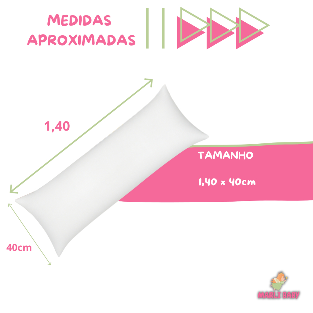 Travesseiro de Corpo Xuxão Com Fronha de Zipper Antialérgico 1,40 x 40cm Varias Cores