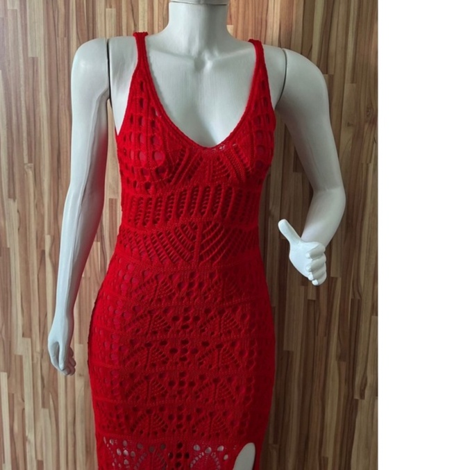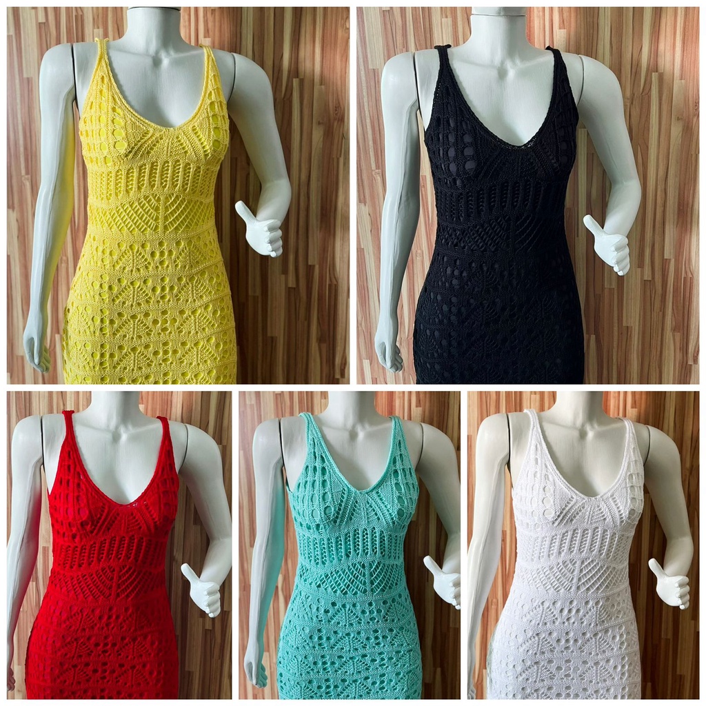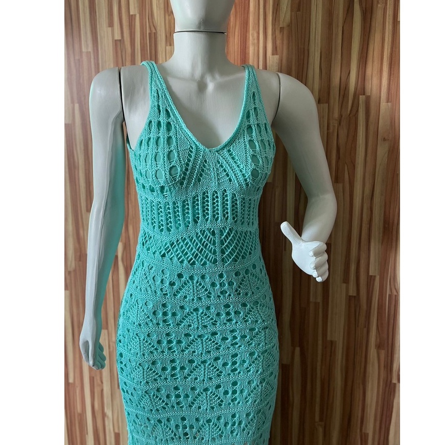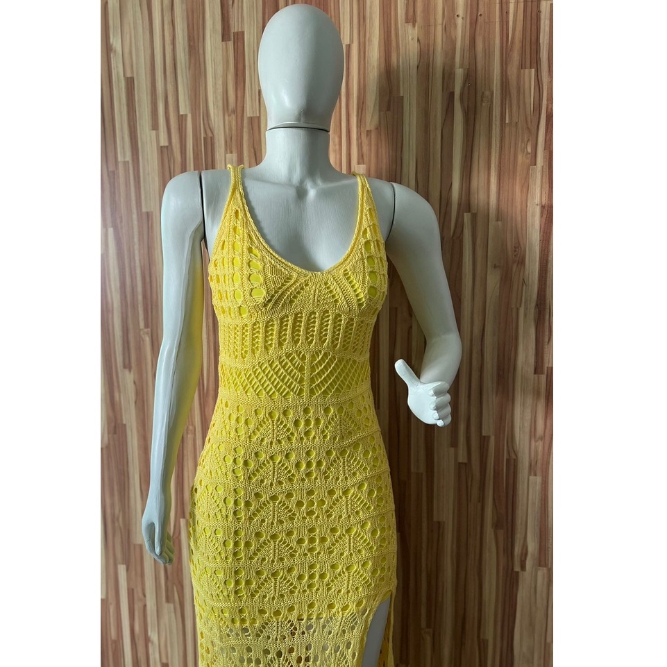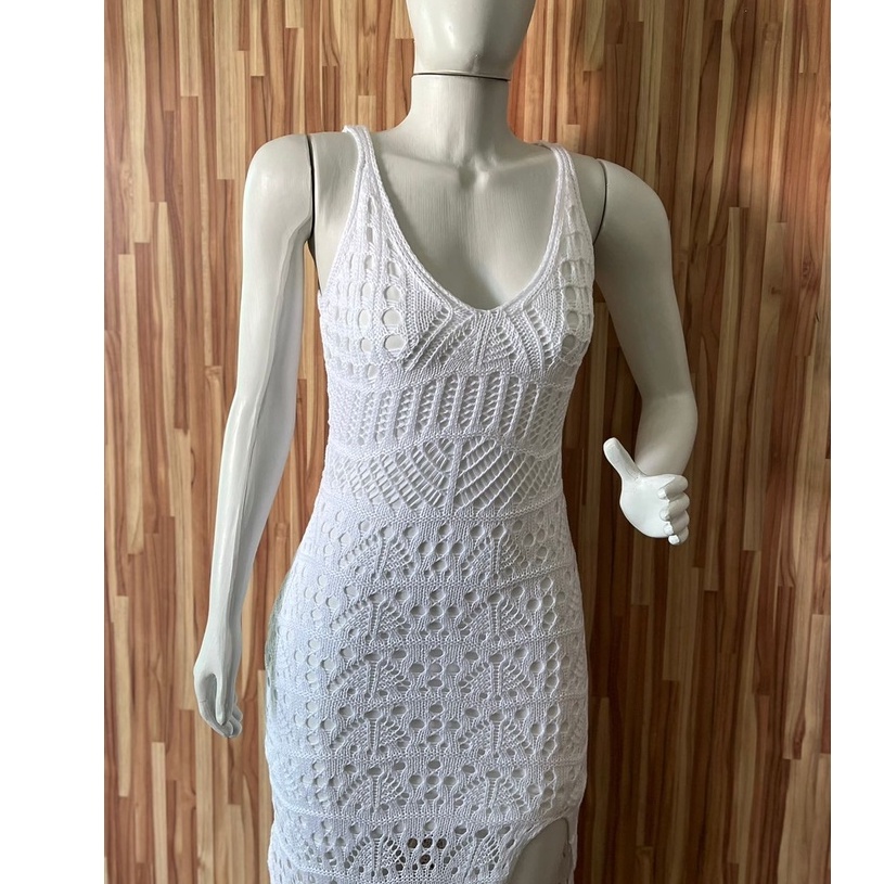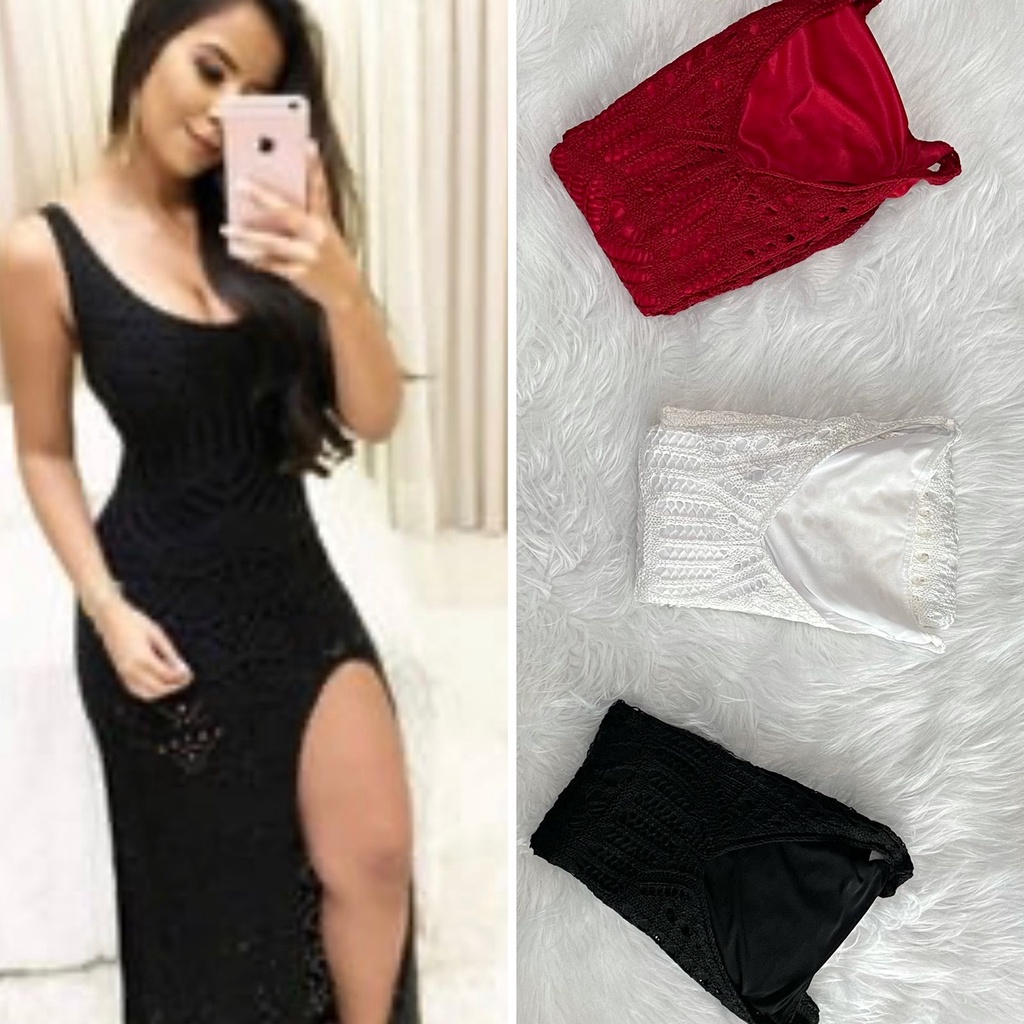 vestido feminino festa longo de trico com fenda