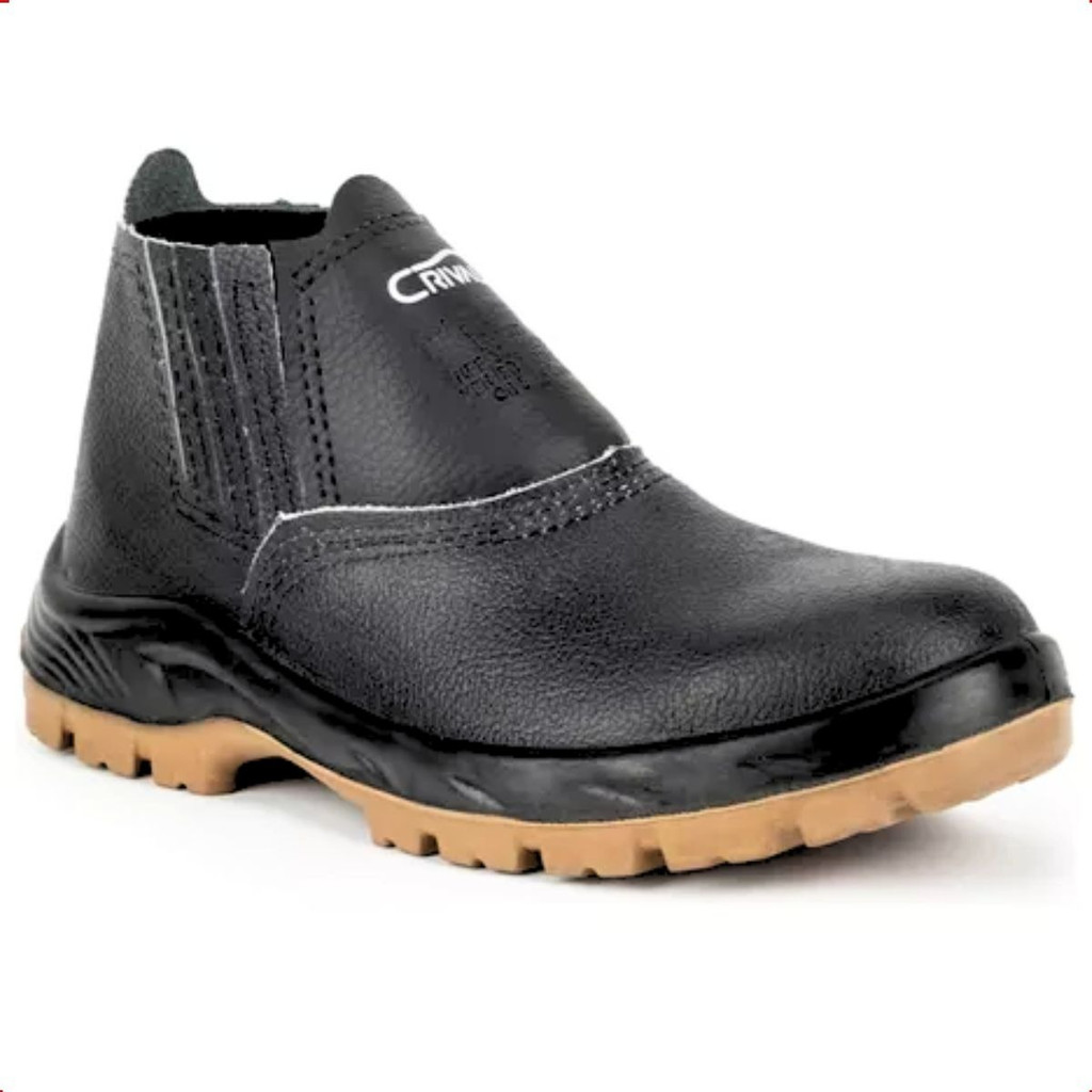 Botina Bico de Aço Preta Bidensidade Crival Fechamento Elástico Segurança Queda Epi Obra com CA