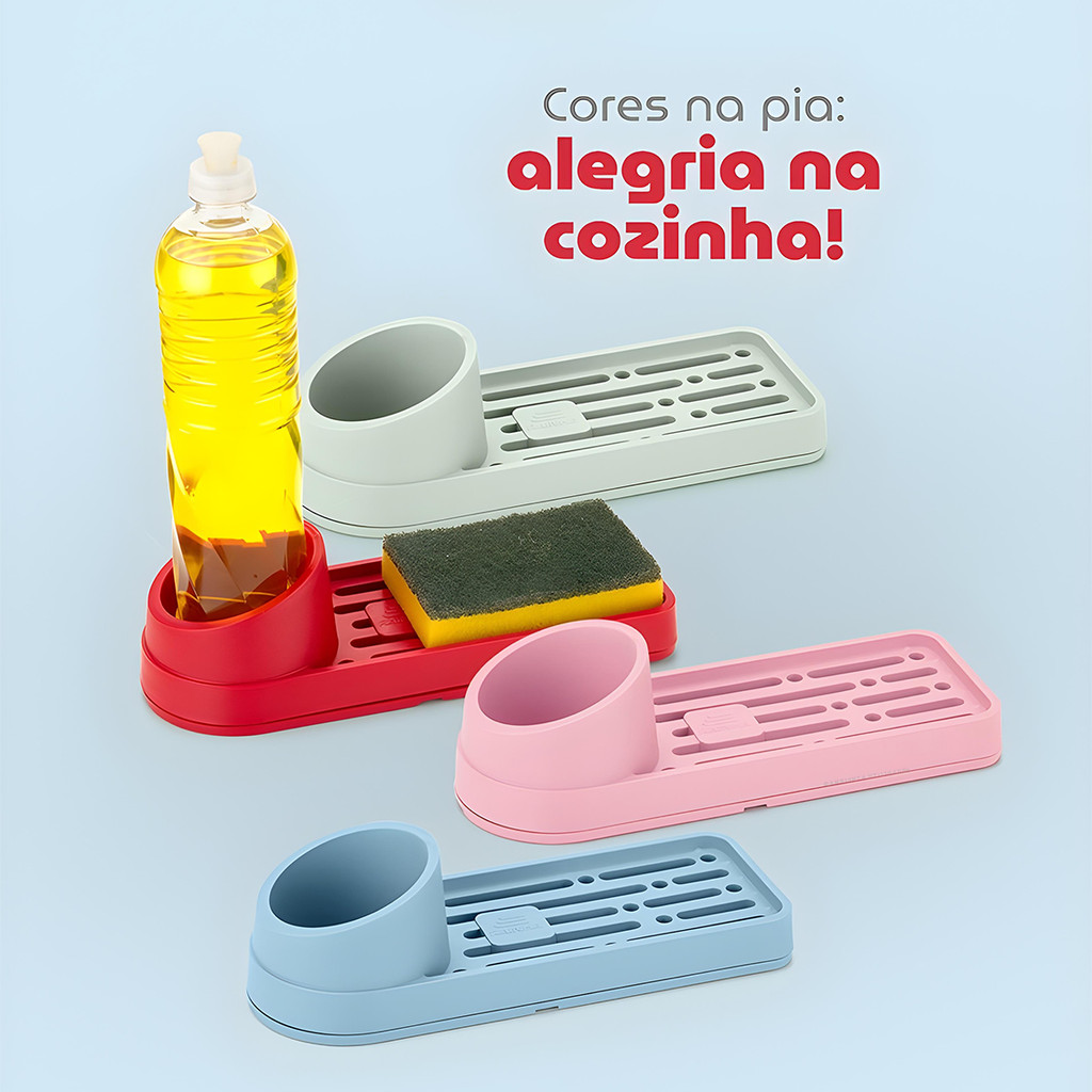 Organizador de Pia Porta Detergente e Esponja Plástico Colorido para Cozinha