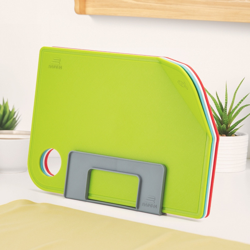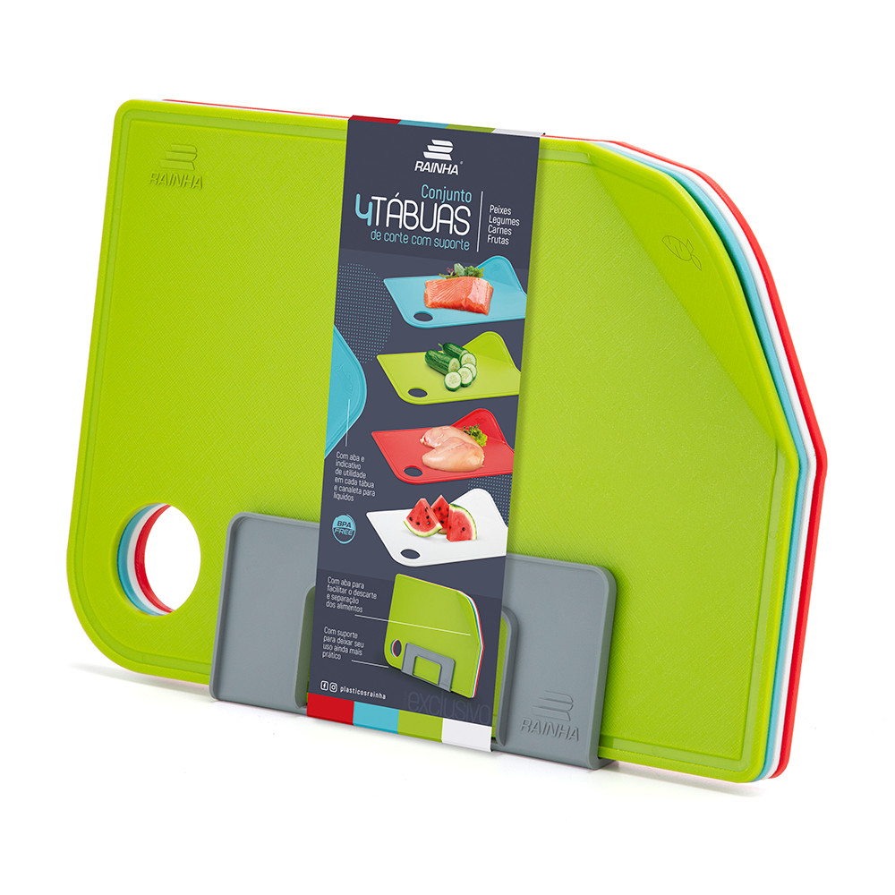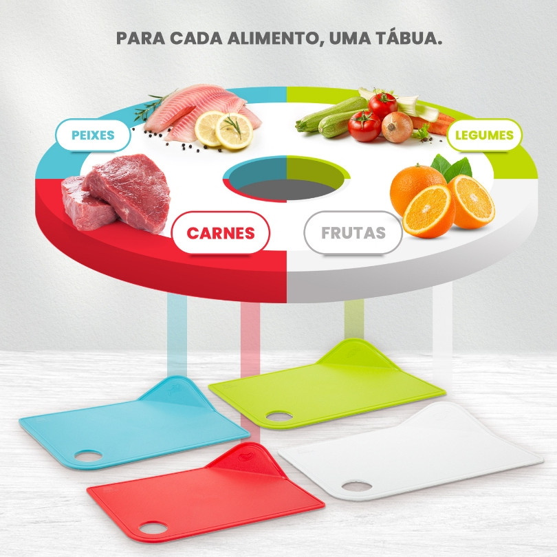 Kit 4 Tábuas de Corte para Carne Churrasco Legumes com Suporte Coloridas Antiderrapante Cozinha